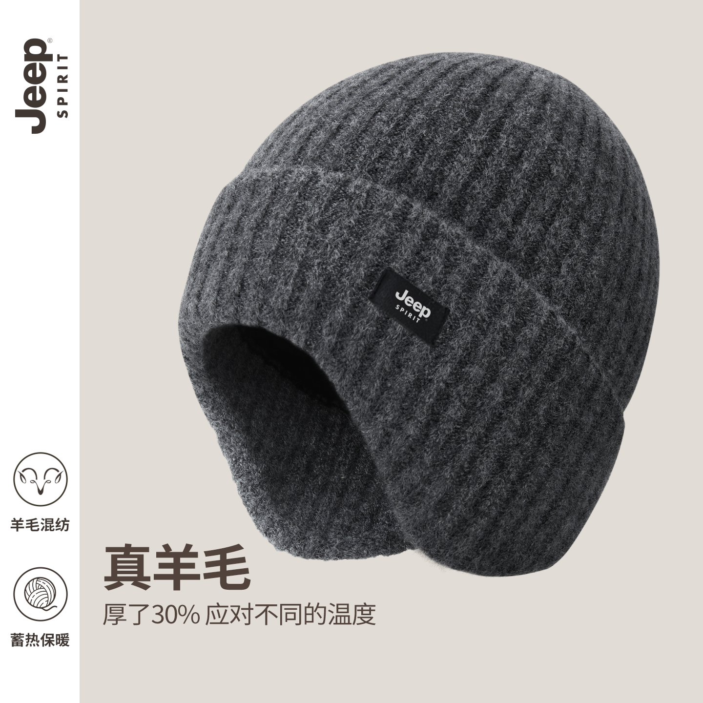 100%羊毛冬日清冷氛围感蓝色系针织帽子女保暖大头围情侣毛线冷帽