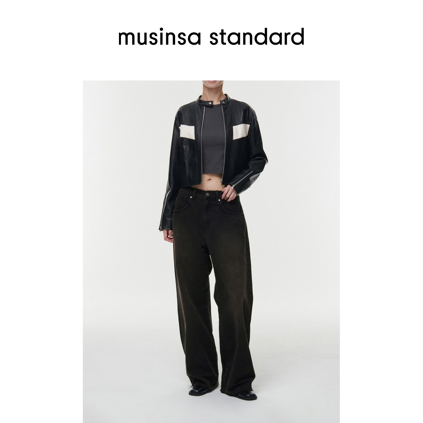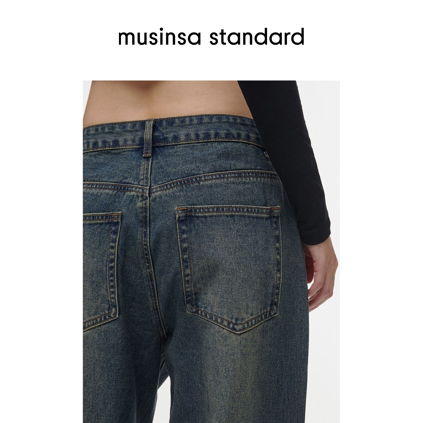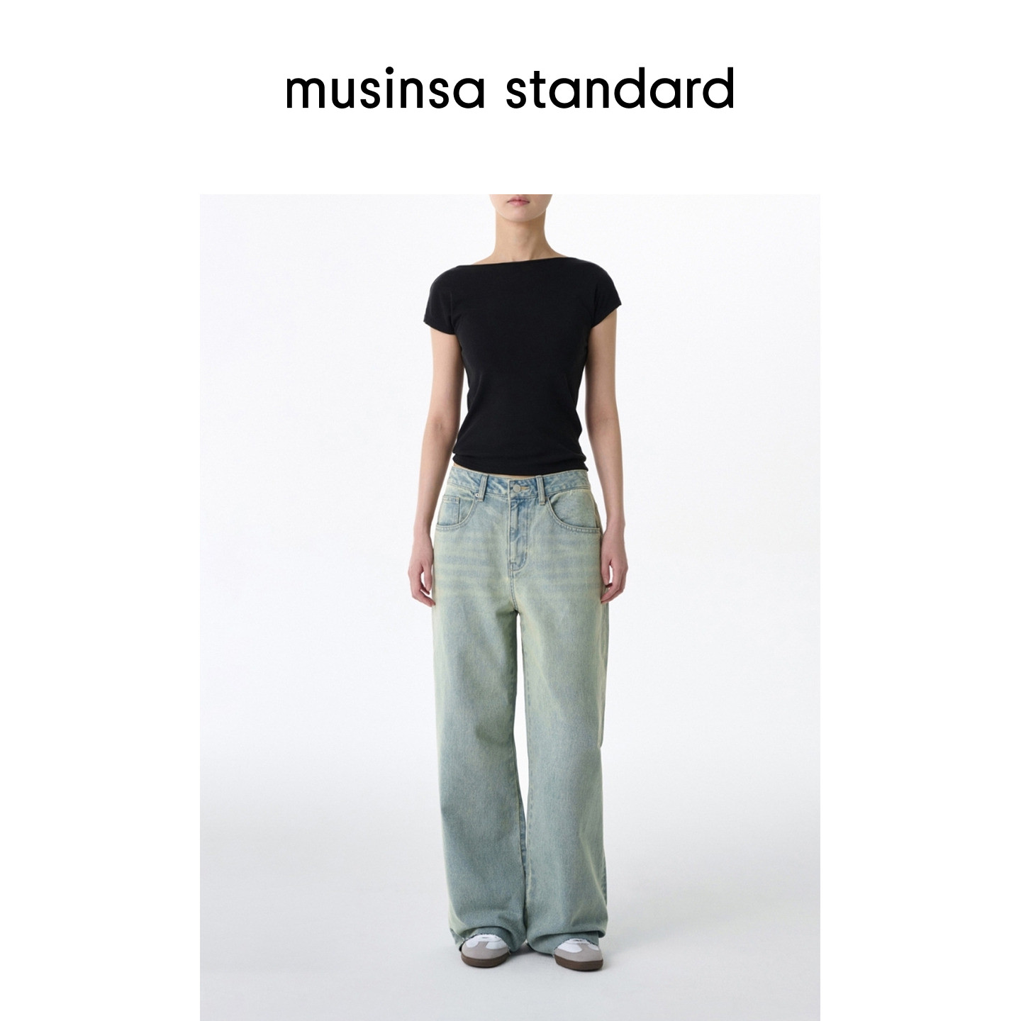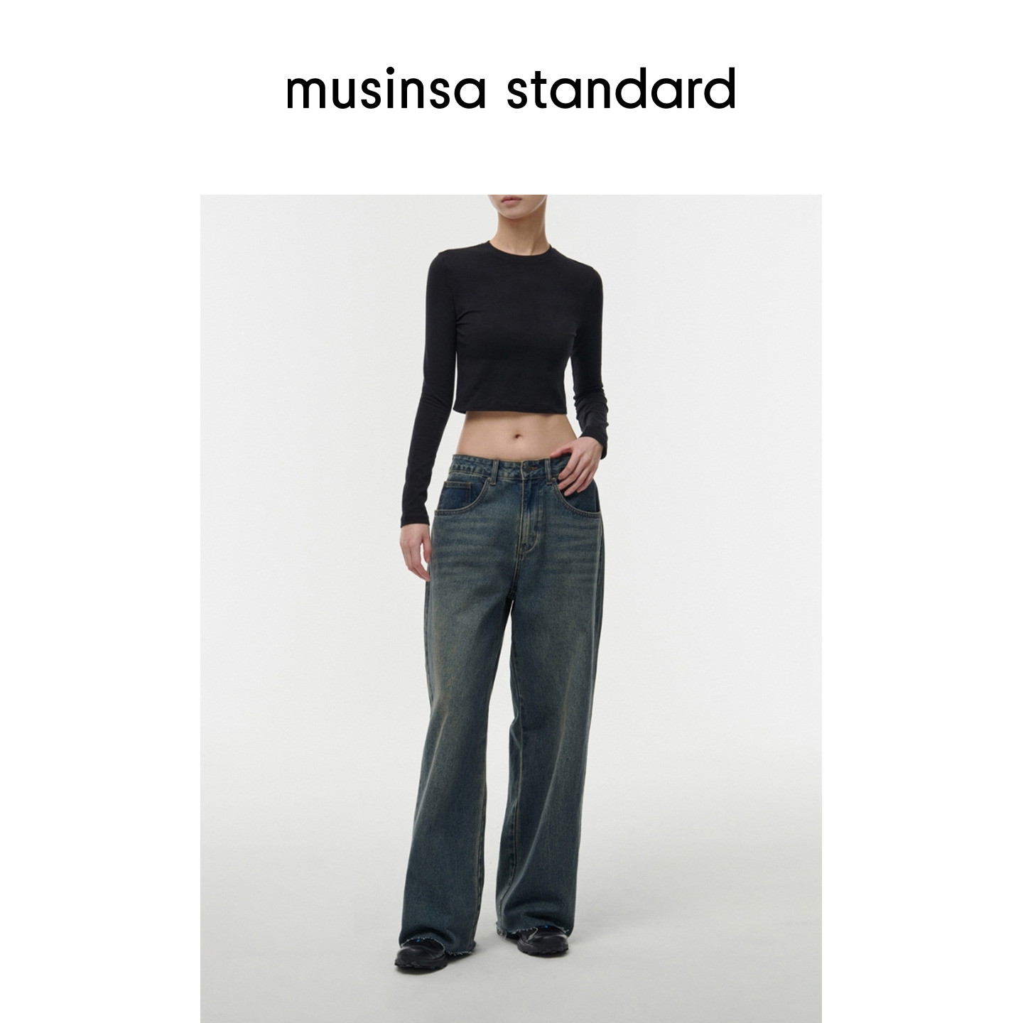 子女蓝色阔腿长裤 高腰显瘦直筒裤 女秋季 班尼路S&K系列宽松牛仔裤