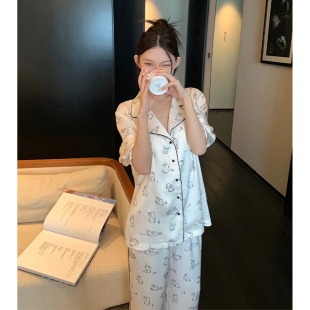 猫人冰丝睡衣女带胸垫春秋款 高级感宽松直筒家居服2026送女友 长袖