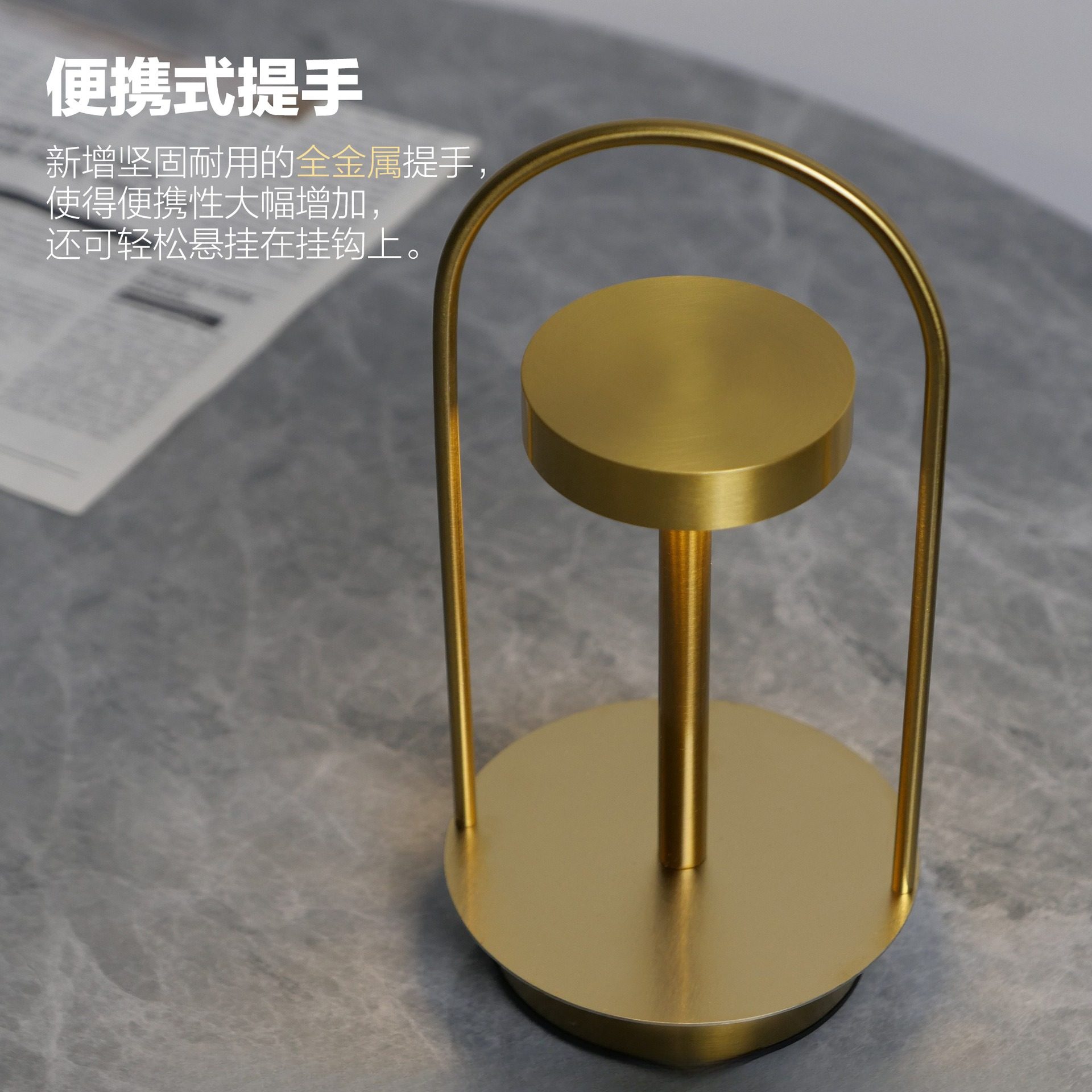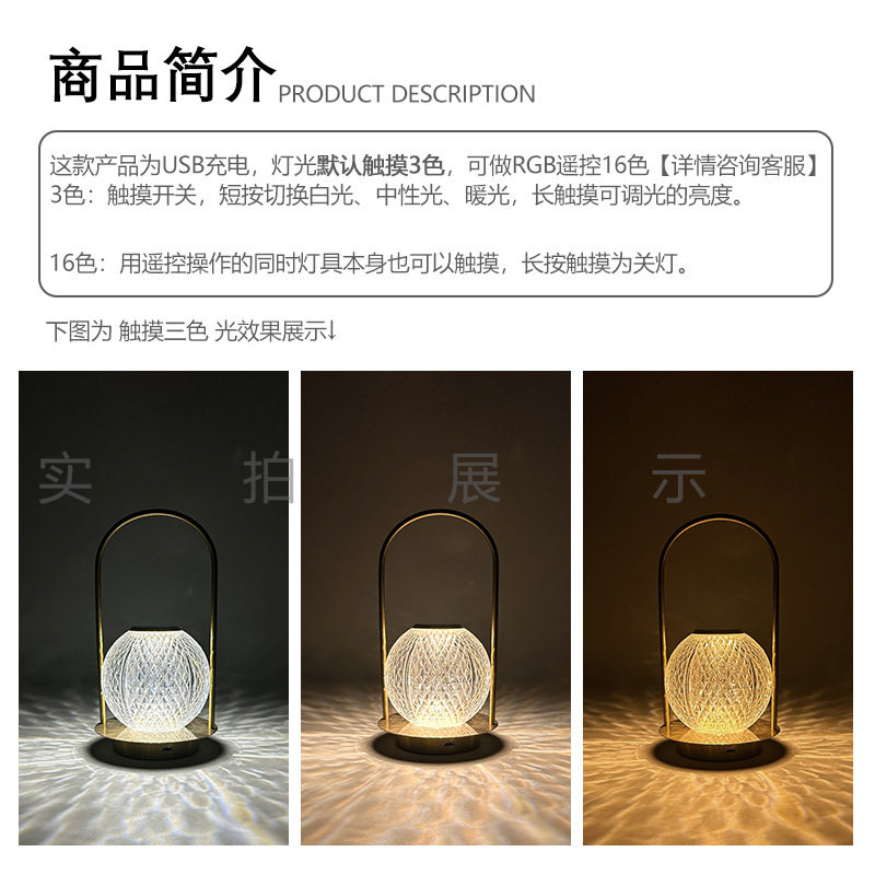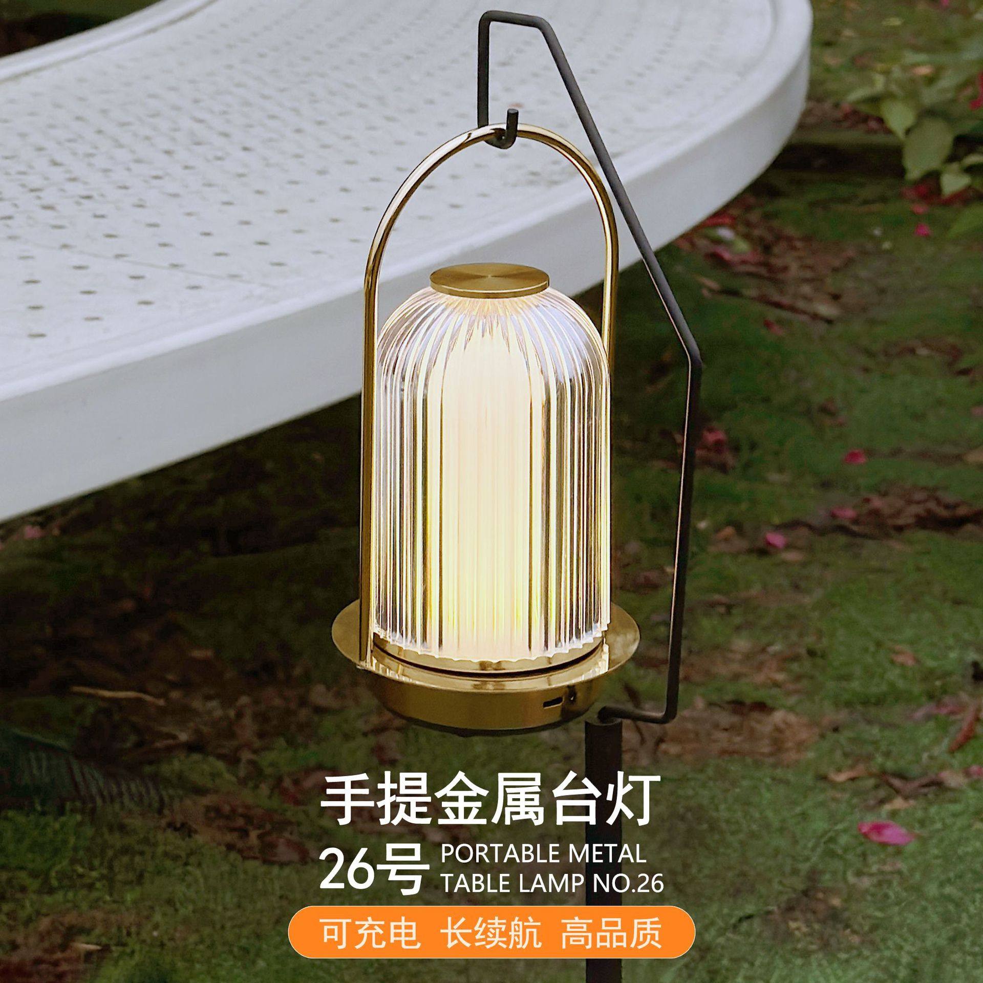 复古金属手提氛围灯卧室床头简约创意台灯USB充电户外露营小夜灯