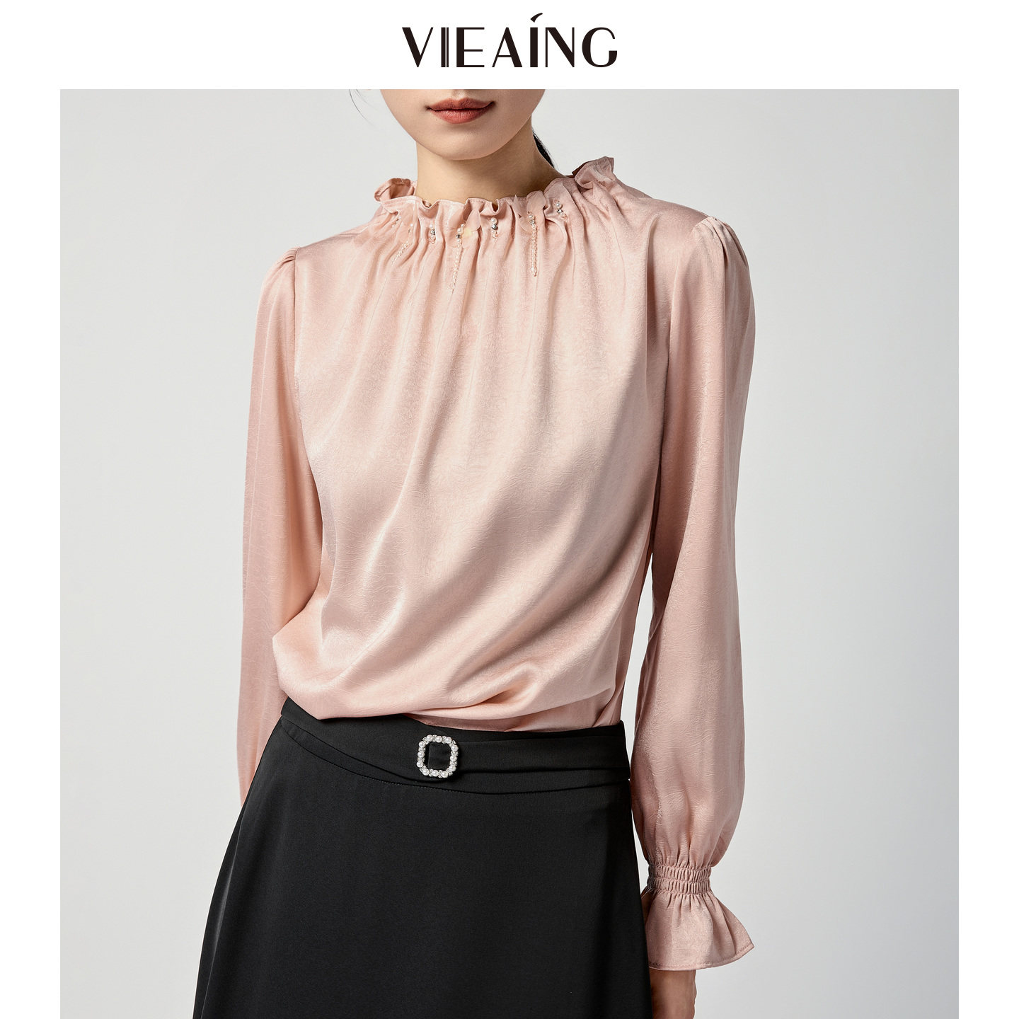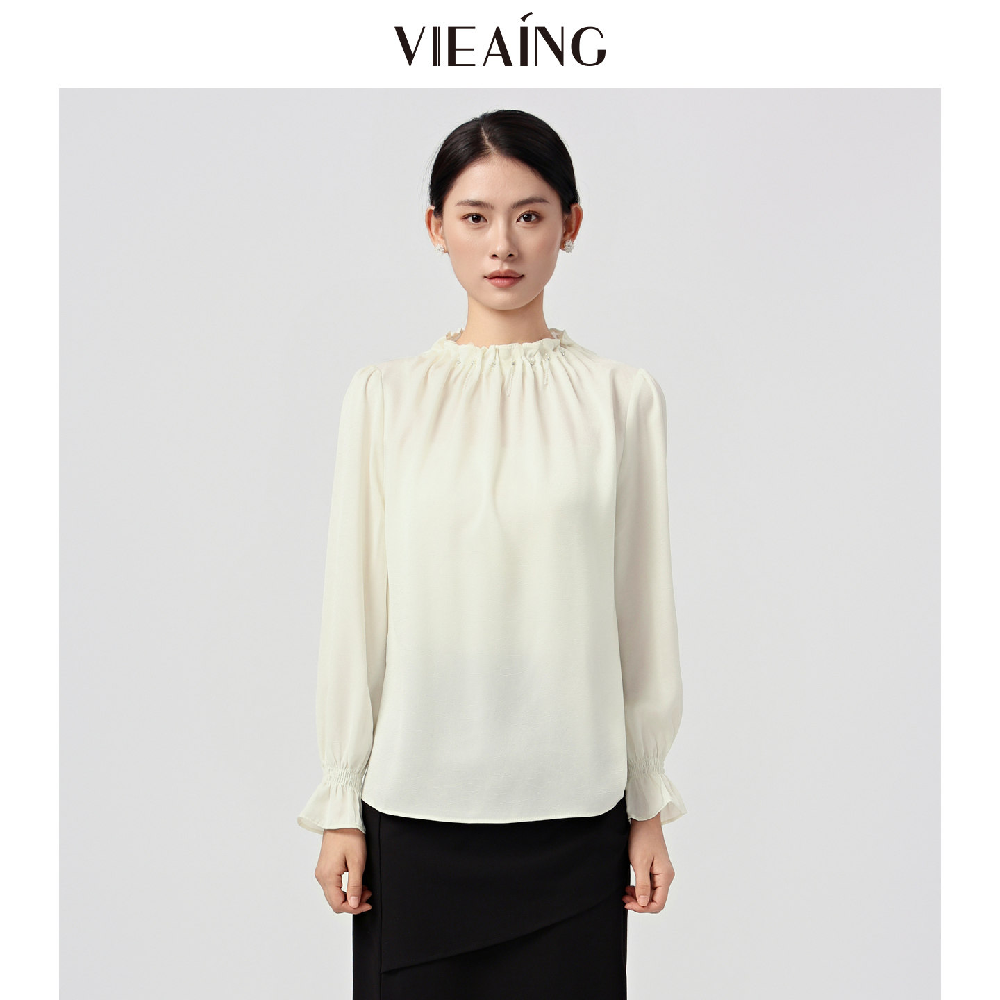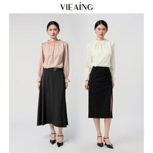 穿搭法式 VIEA.ING薇迎商场同款 女2026春季 衬衫 衬衣杏色上衣 长袖