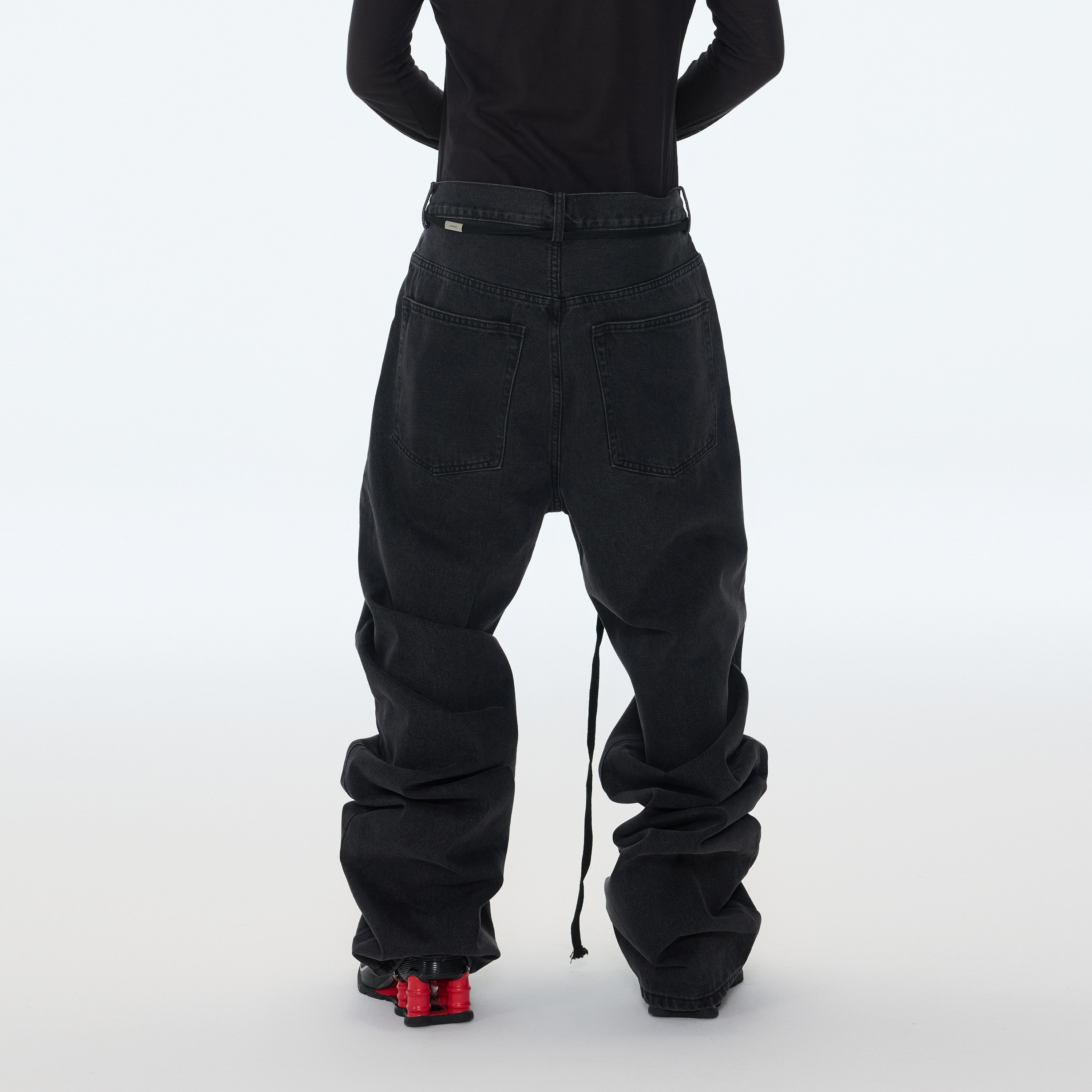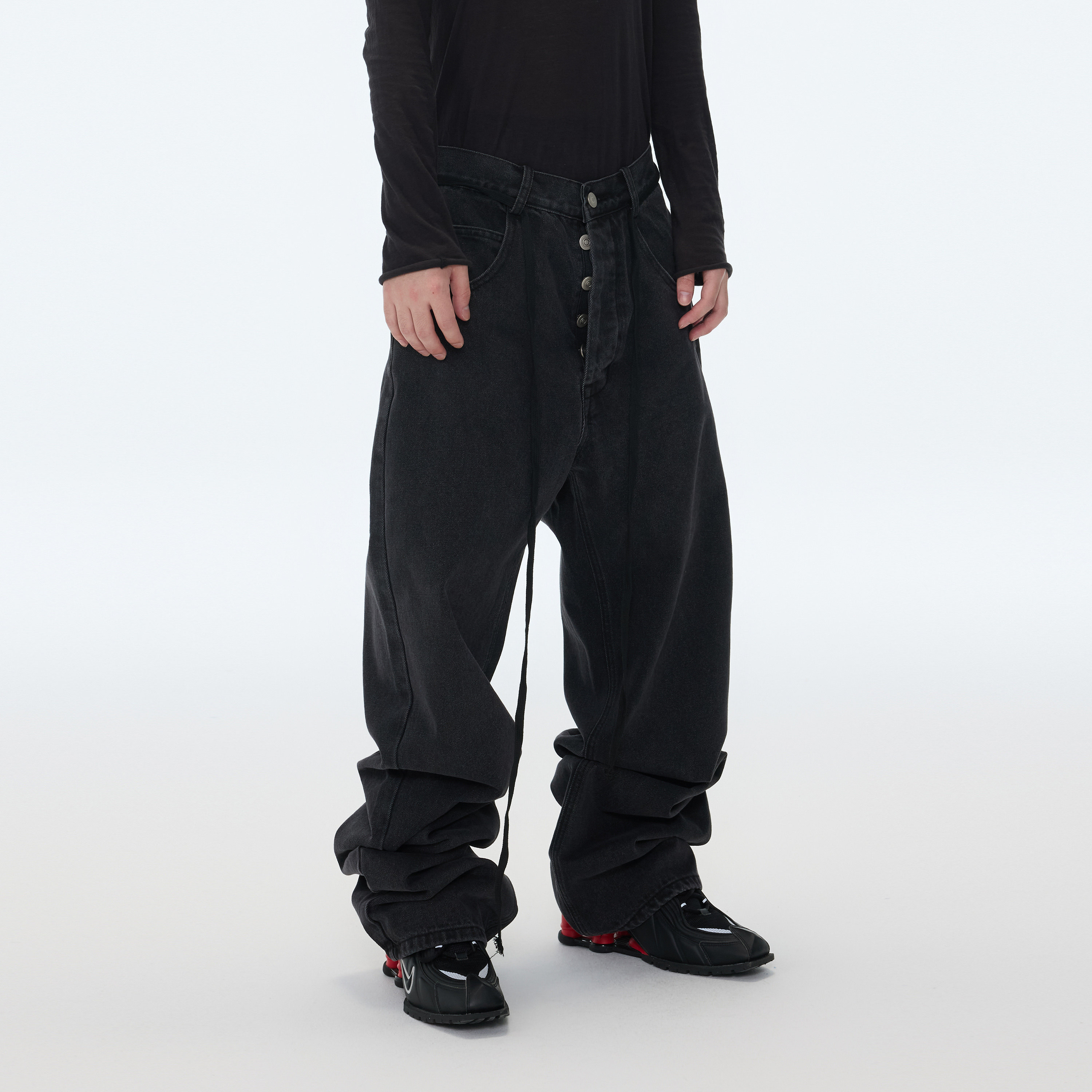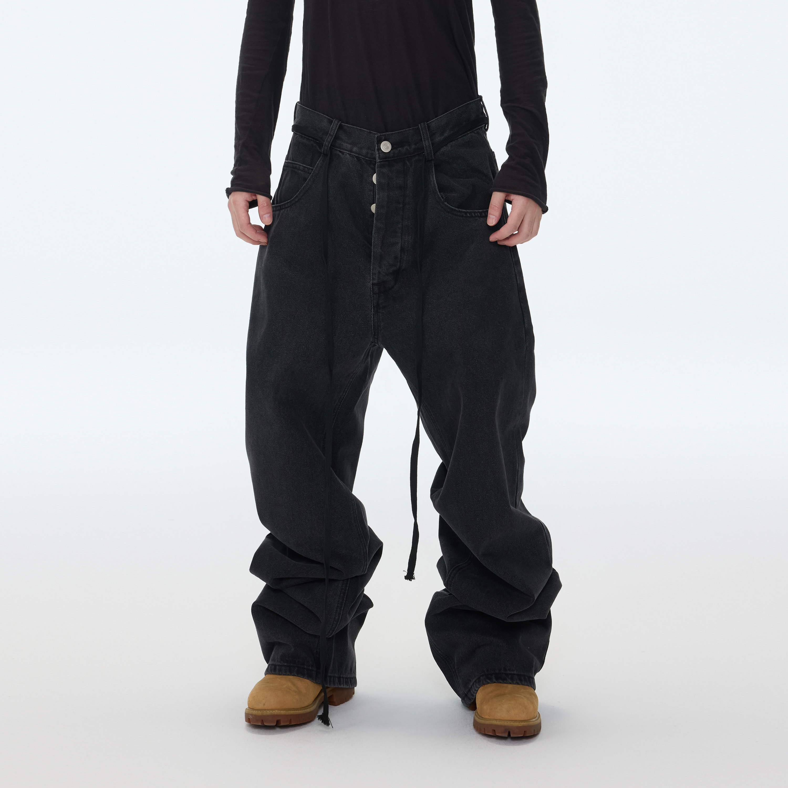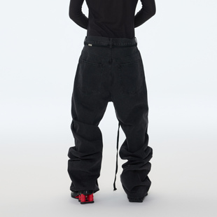 堆叠长裤 水洗做旧宽松直筒加长堆积感黑色牛仔长裤 25AW ASTT