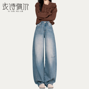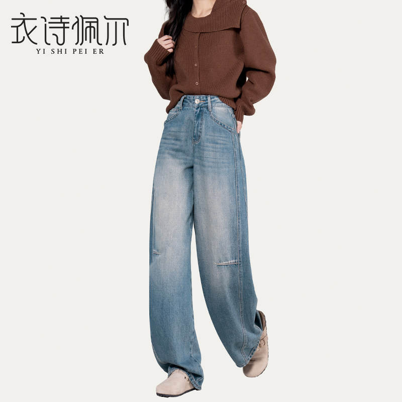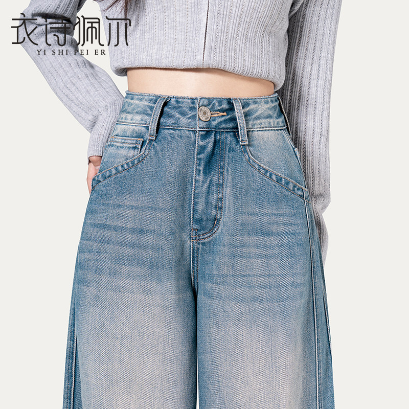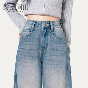 百搭镰刀牛仔裤 2025冬季 女高腰复古显瘦垂感时尚 加绒弯刀裤 子 新款