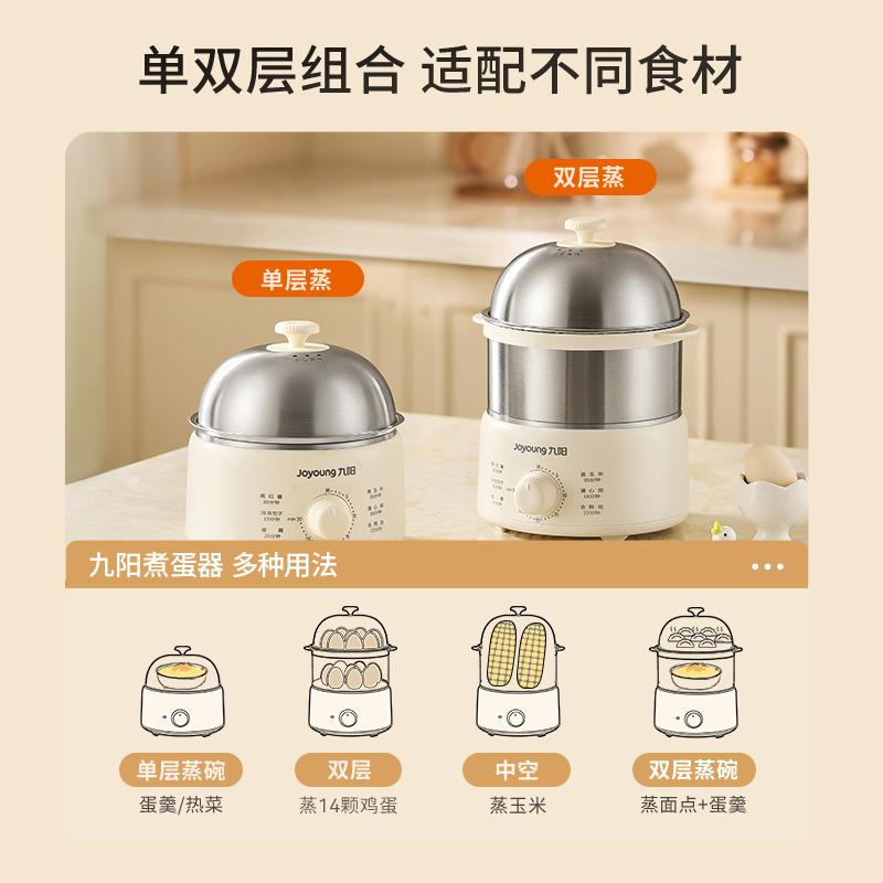 九阳煮蛋器蒸蛋器316L不锈钢多功能定时自动断电煮蛋神器新款 正品