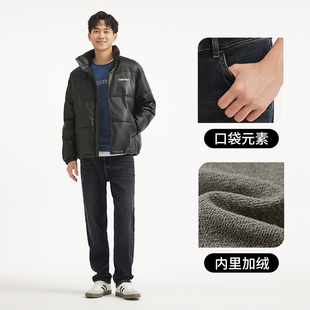 牛仔裤 直筒窄脚锥型牛仔裤 加绒保暖长裤 新款 2025年冬季 热风男士