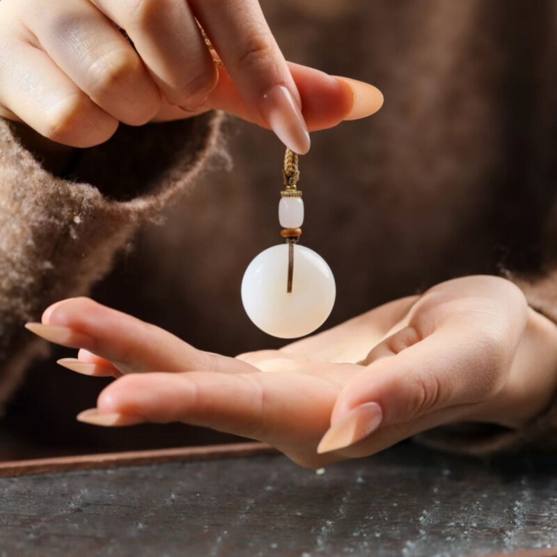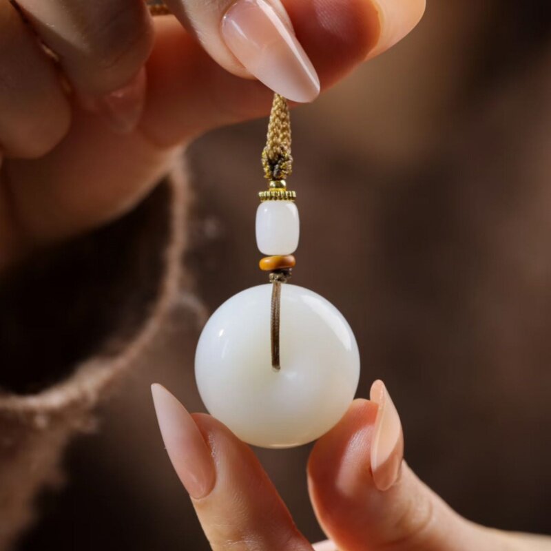 新疆和田玉平安扣吊坠男女玉佩高品质羊脂白玉一级且末料白玉扣子
