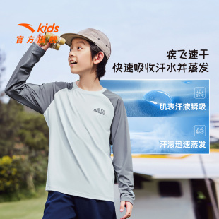 户外薄荷炫干长袖 安踏儿童装 女童打底衫 T恤2026春秋新款 男童长袖