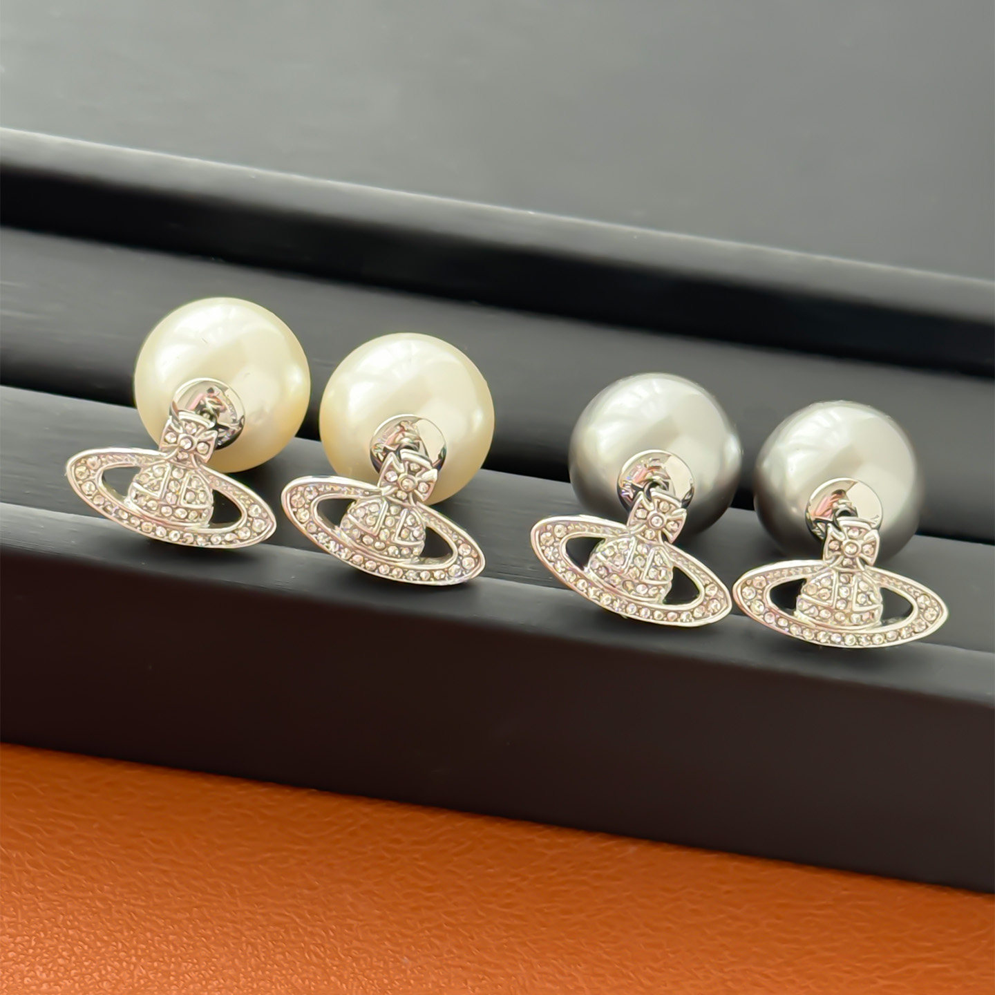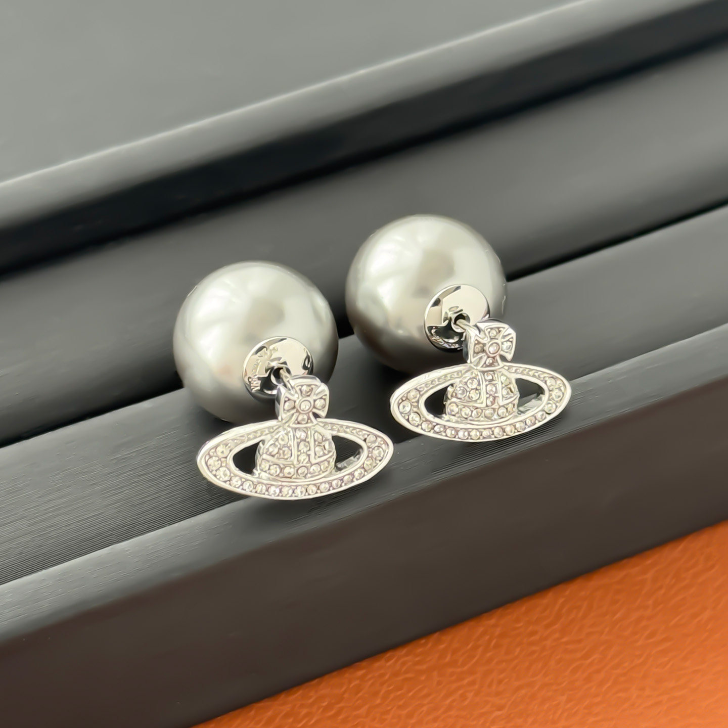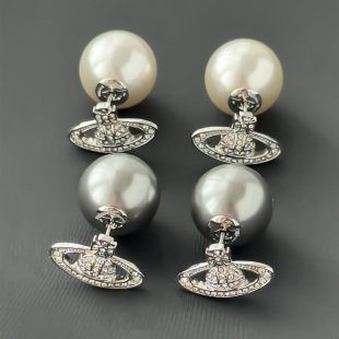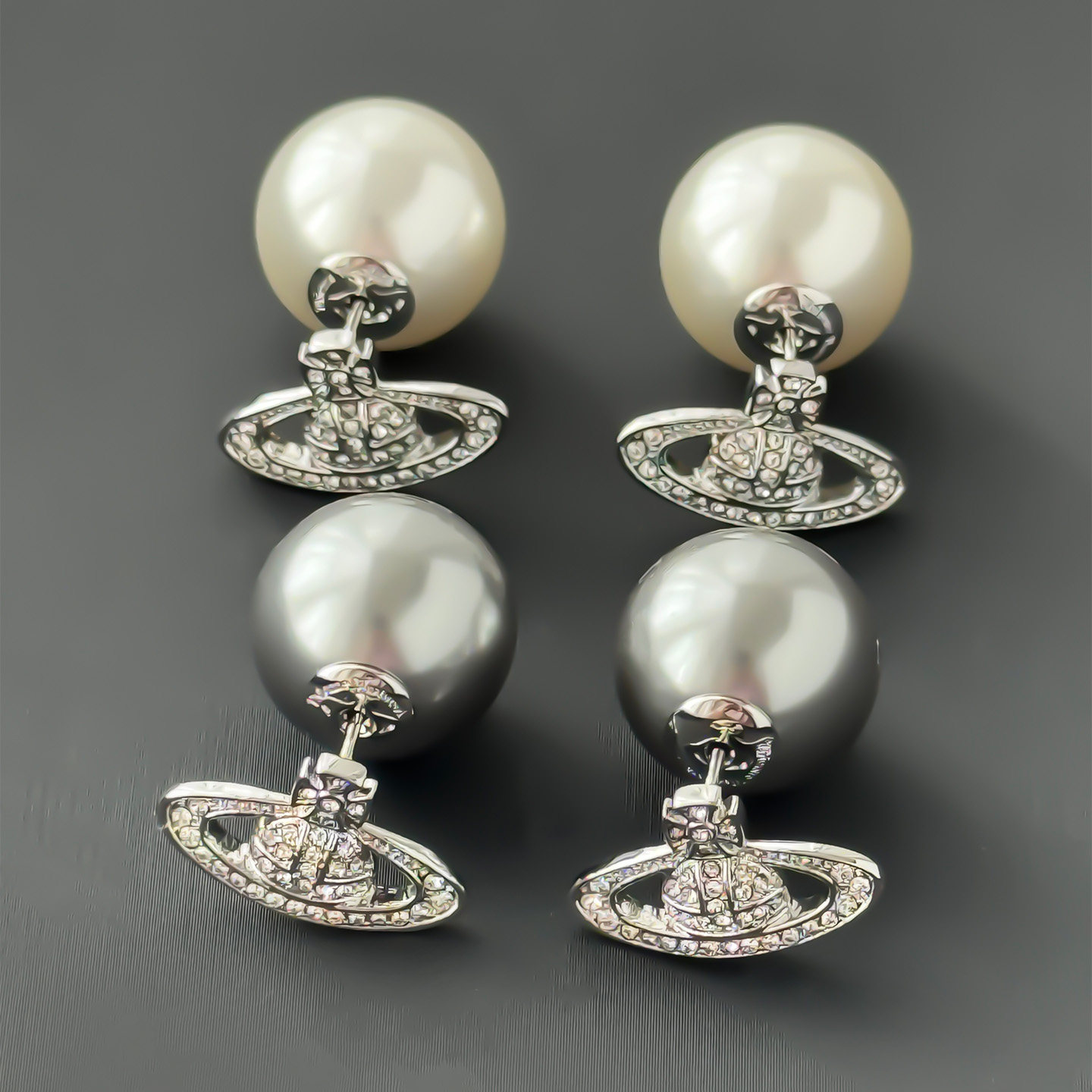 大珍珠土星镶钻耳钉真多麻灰2025年新款 耳饰 星球耳环小众设计时尚