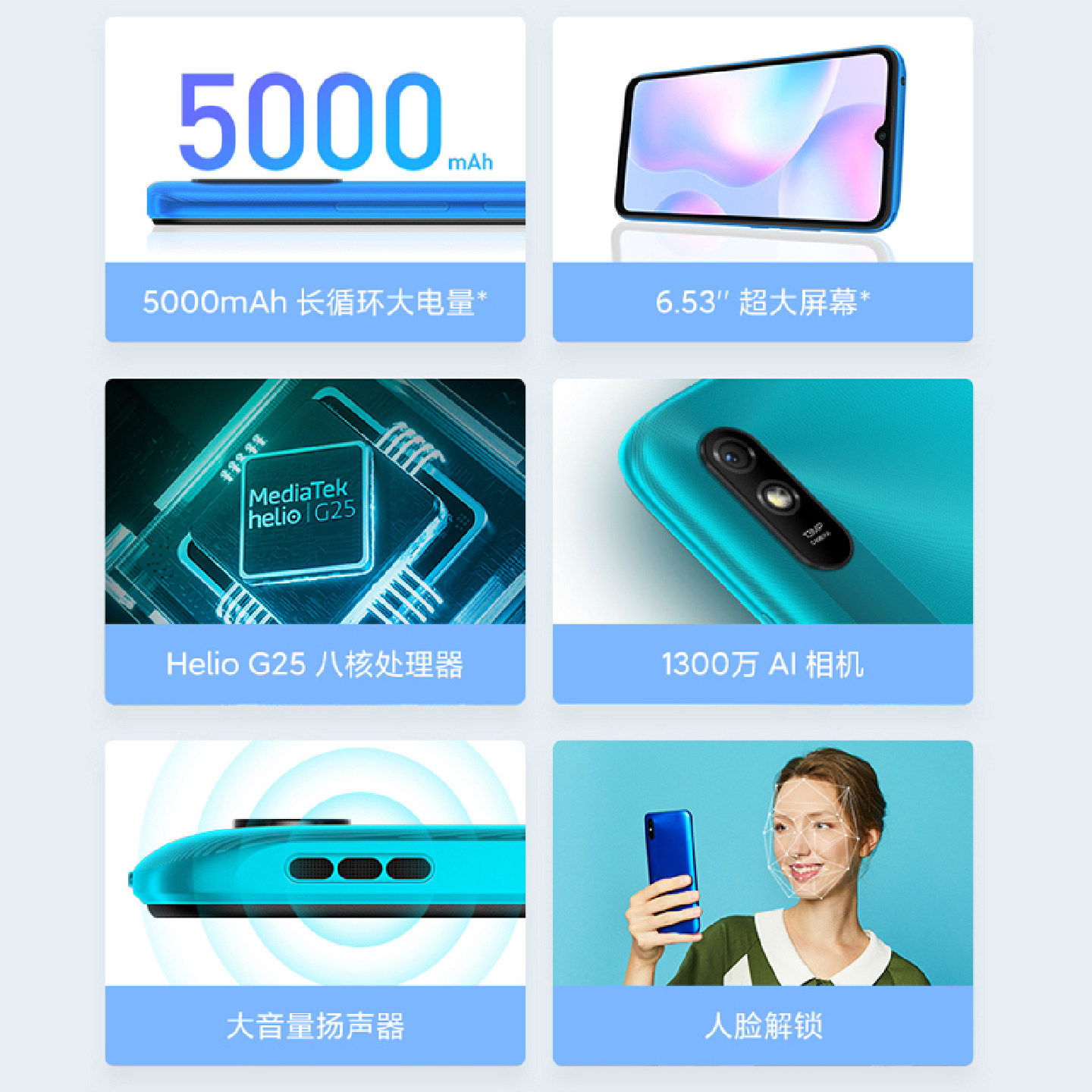 9A大屏幕大电池学生老人便宜智能手机 Redmi MIUI 小米