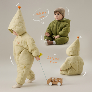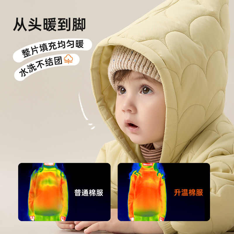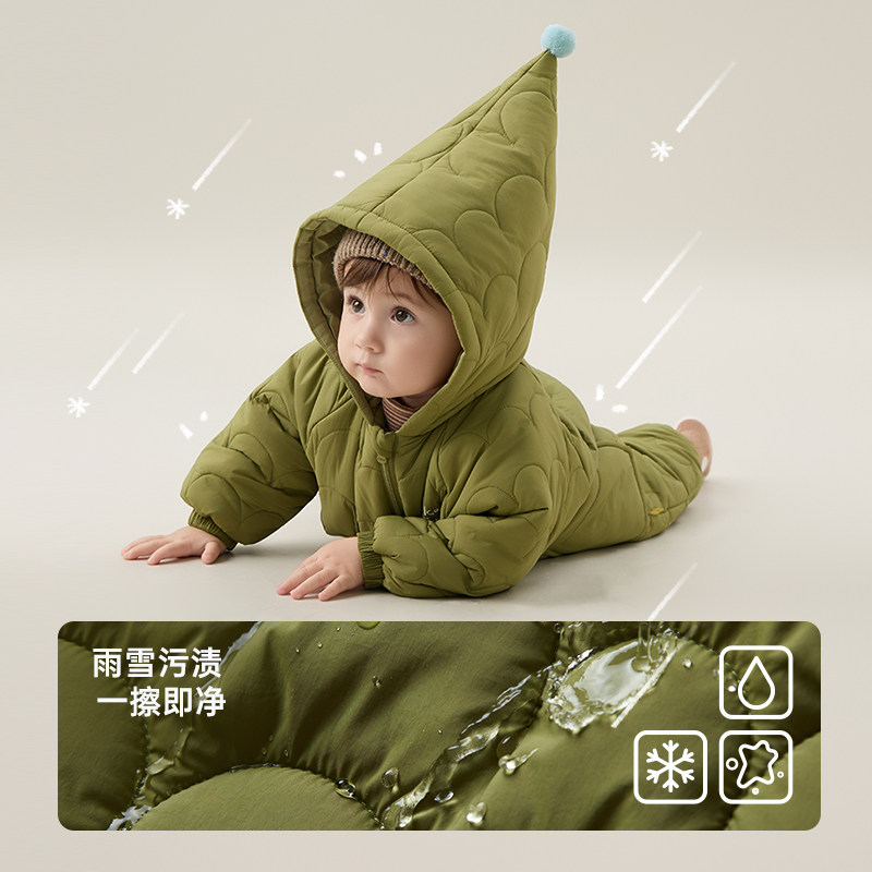 新品 papa秋冬季 宝宝连体衣夹棉男女宝婴儿衣服蓄热爬服 三防