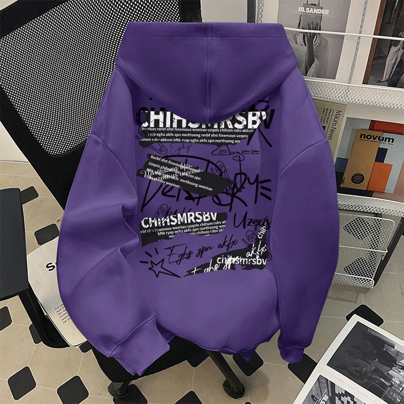 秋季 真维斯美式 男女款 卫衣帽衫 百搭宽松外套 高街潮牌vibe紫色个性