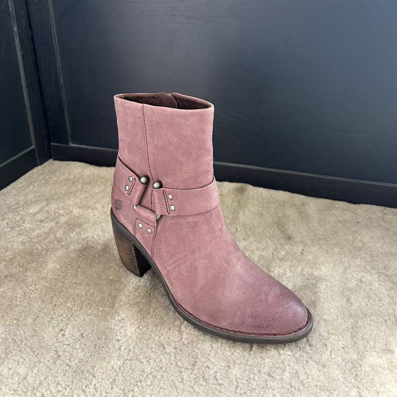 百丽画廊假日加绒时装 弹力靴反绒面粗高跟显瘦瘦短靴子BBWB1DZ5