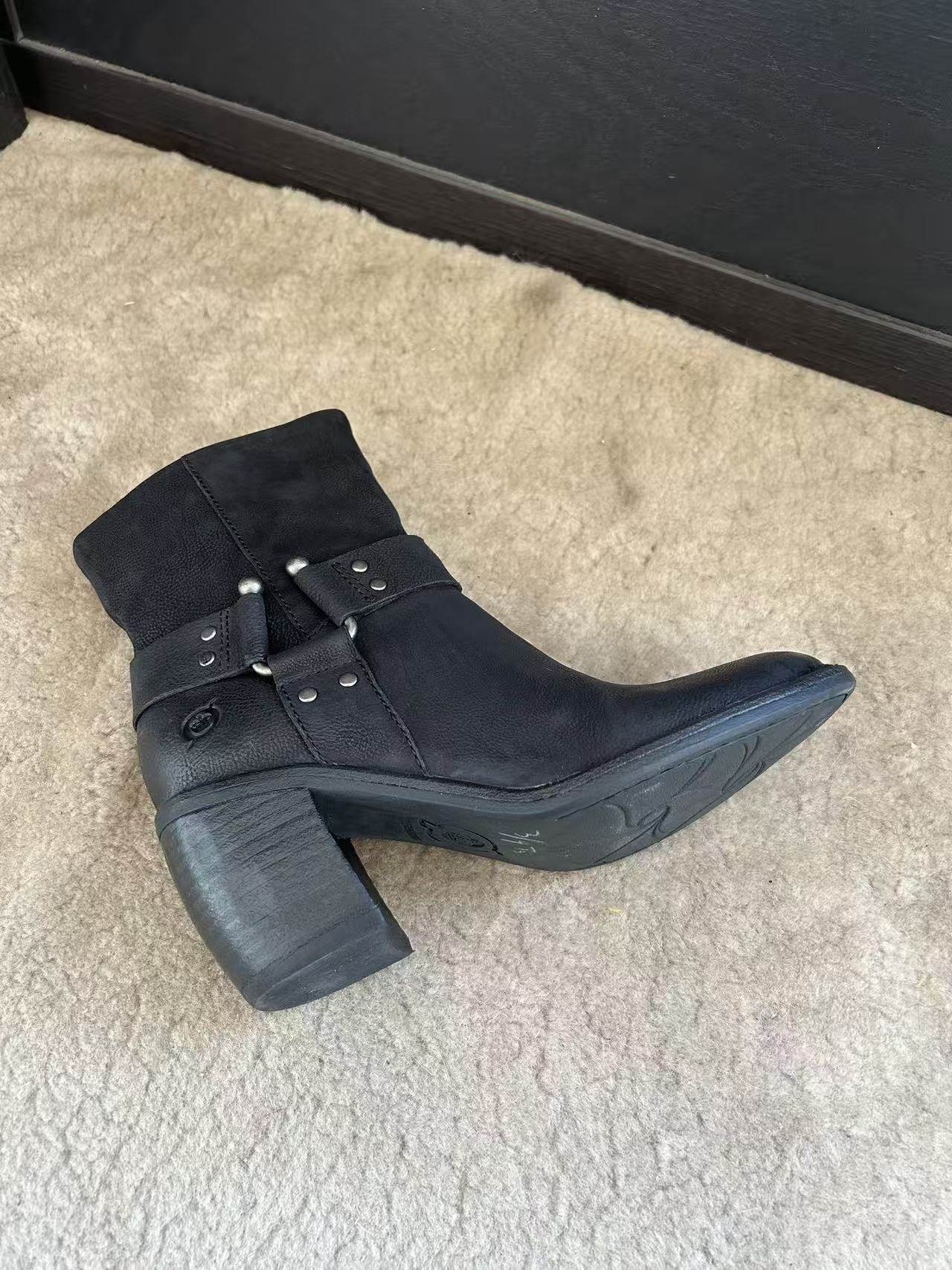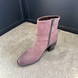 方头粗跟短靴通勤休闲靴子女鞋 热风高跟时装 法式 新款 靴2025年冬季