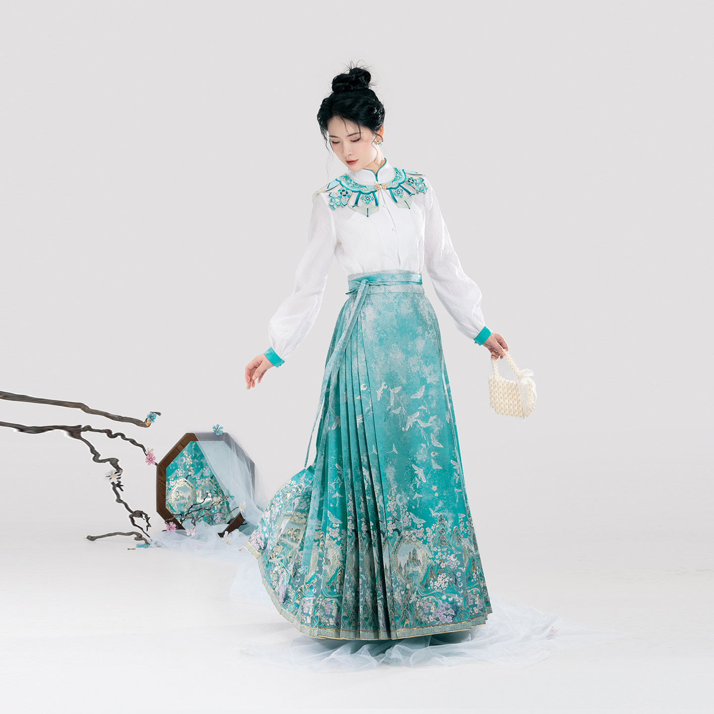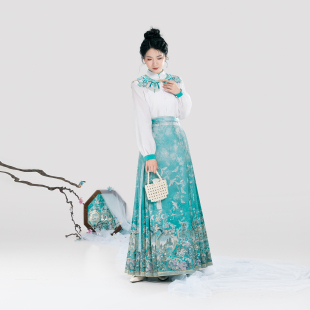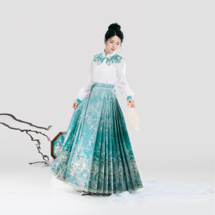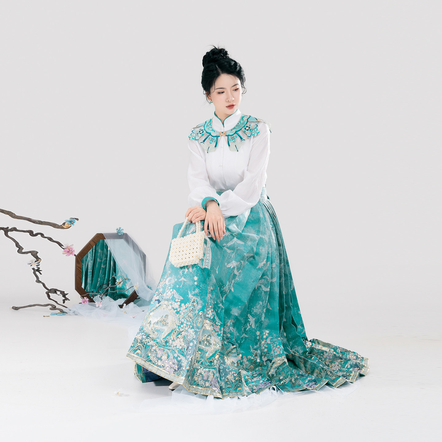 缎面提花衬衫 绣花云肩立领长袖 上衣明制妆花马面裙女 蜉蝣 织造司