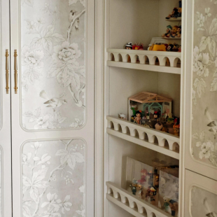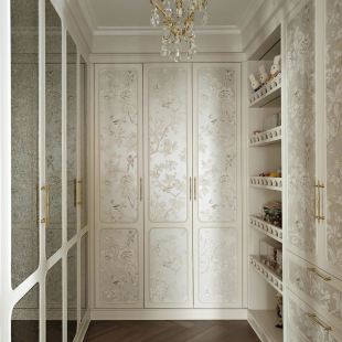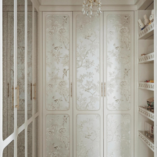 高端定制无缝墙布壁画壁布美式 中国风复古花鸟衣帽间柜门墙纸 法式
