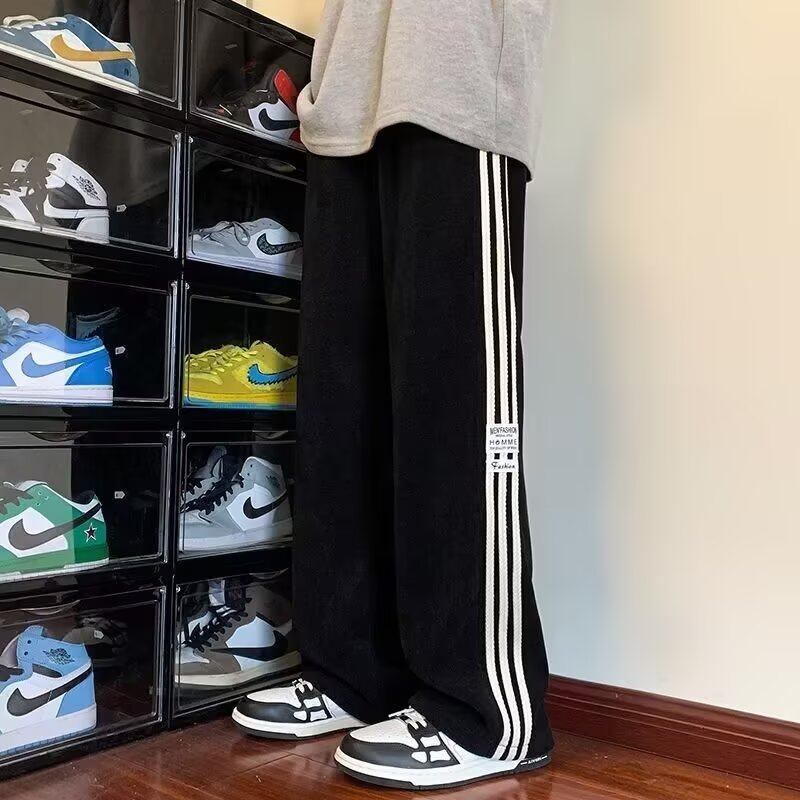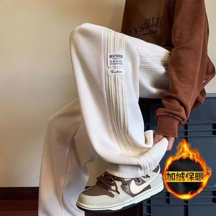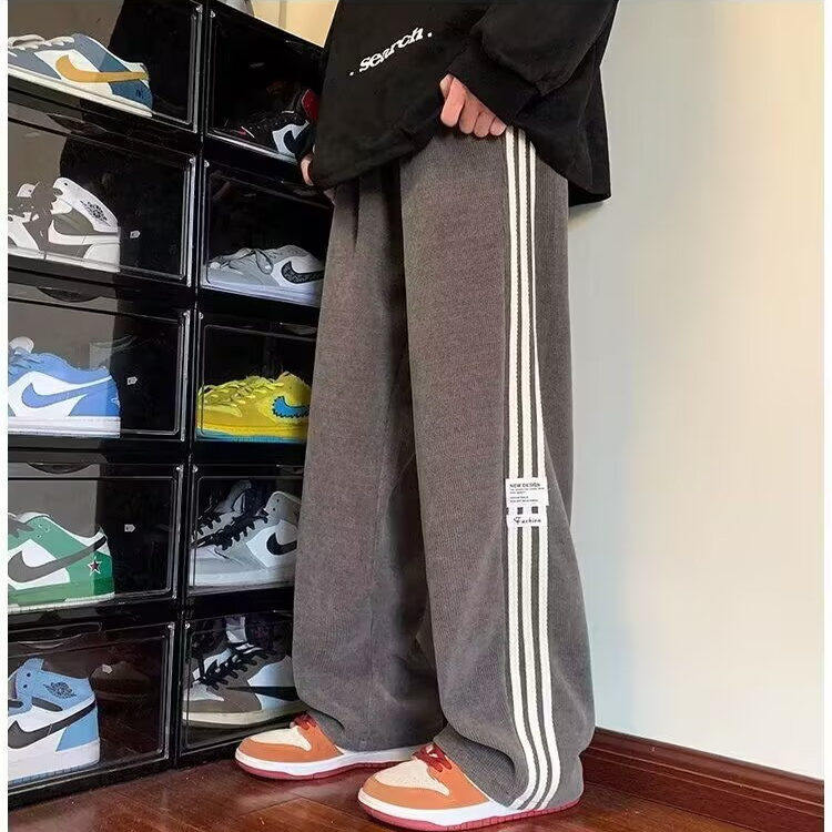 灯芯绒卫裤 美式 青少年大码 子男秋冬潮牌加绒宽松休闲长裤 三条杠裤