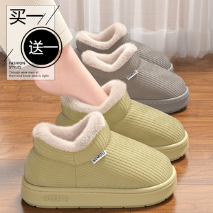 男 防滑防水静音厚底居家毛毛拖情侣棉鞋 买一送一女士秋冬季 棉拖鞋