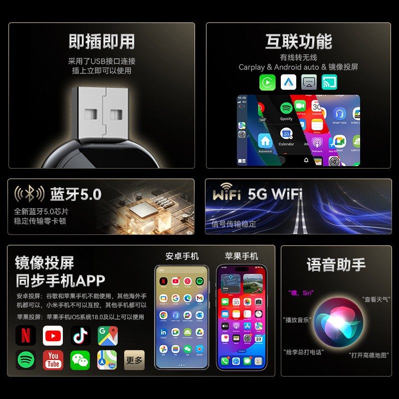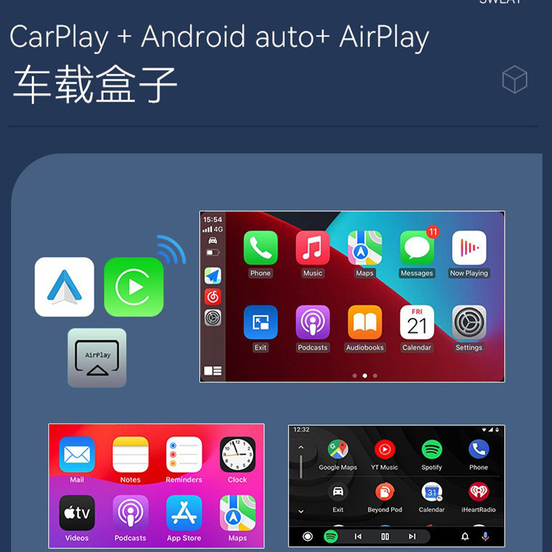 车机互联转换盒子无线Carplay导航视频安卓手机互控投屏镜像适配
