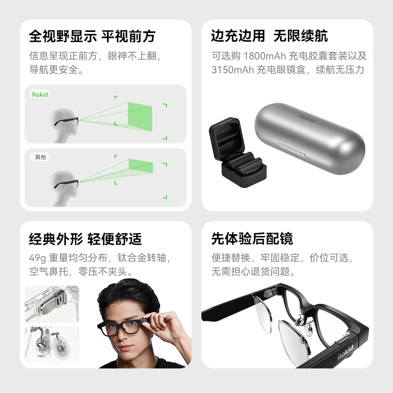 Rokid乐奇Ai眼镜带显示Glasses黑科技模型智能拍照拍摄ar实时面对面翻译搜题考试提词千问豆包 领88消费券