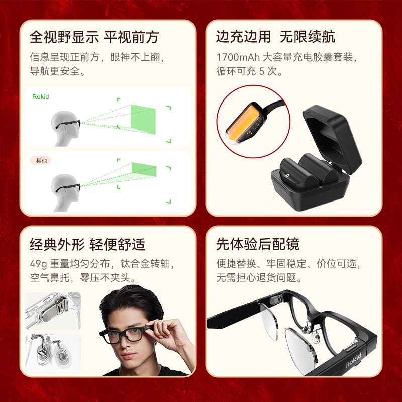 RokidGlasses乐奇Ai眼镜智能拍照拍摄导航实时面对面翻译搜题提词器黑科技影视飓风AR送礼品 新年限定礼盒