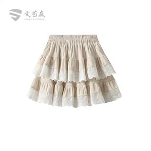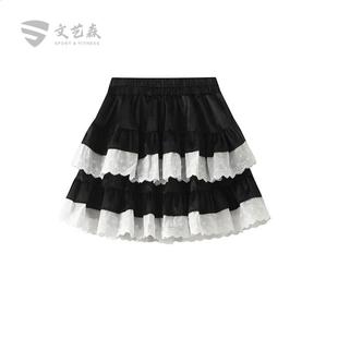 丝绒芭蕾蕾丝蛋糕裙半身裙女2024秋蓬蓬裙短款 层层花边短裙D998