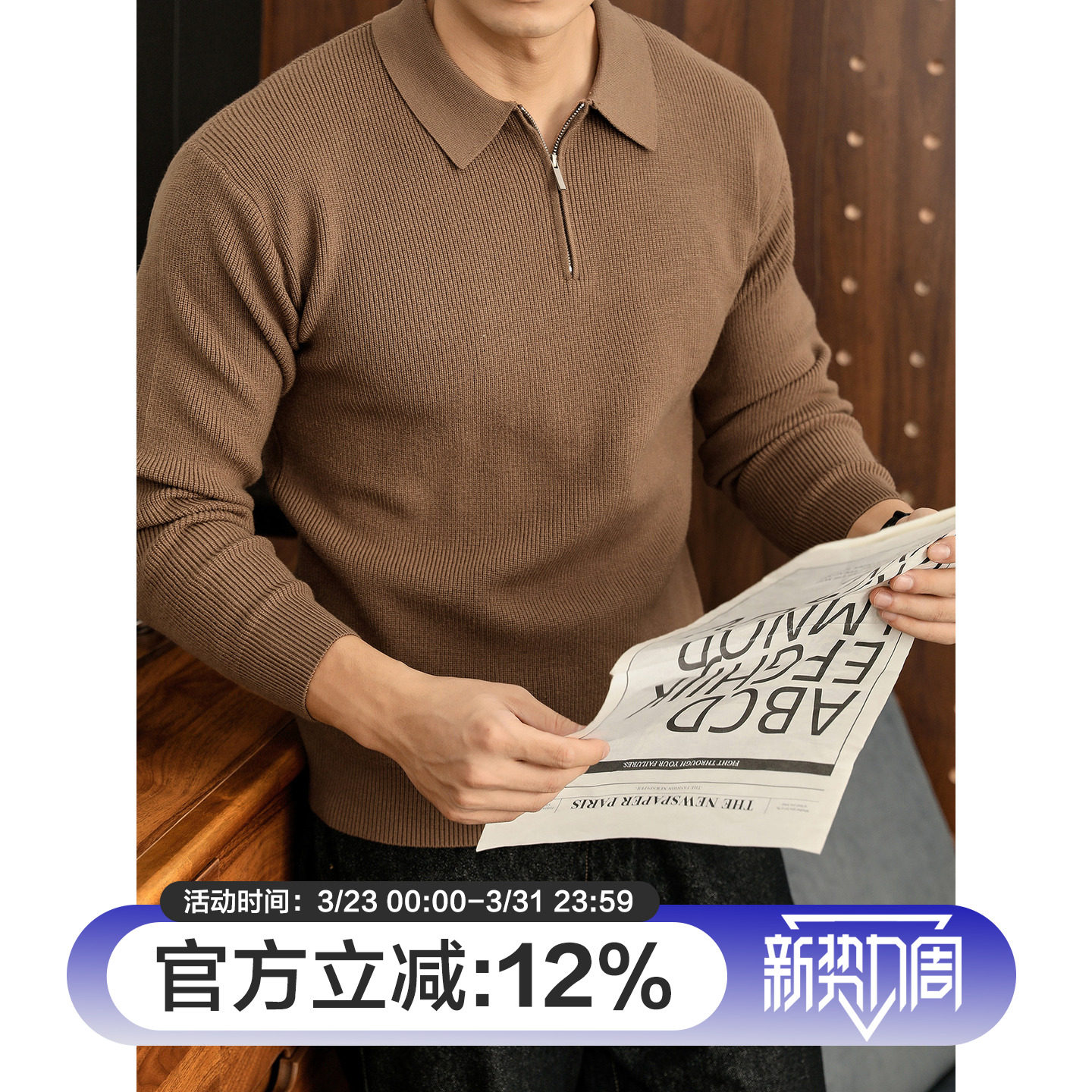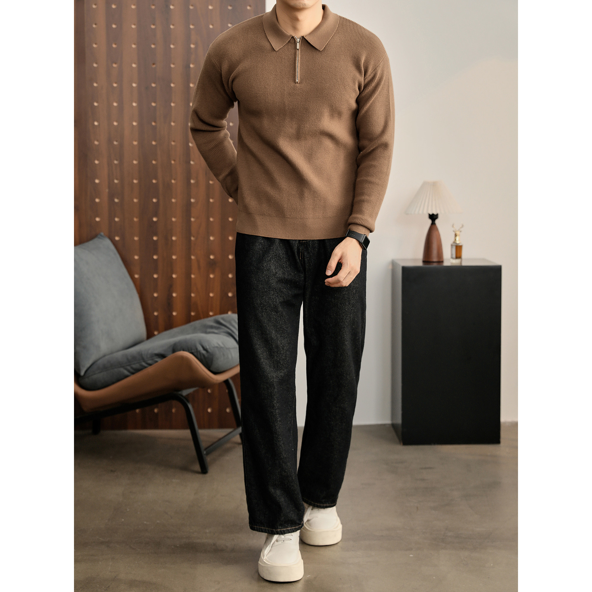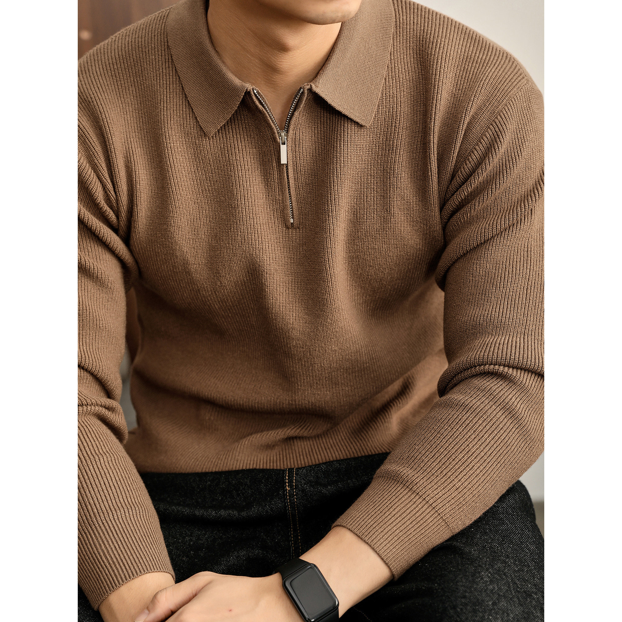 男都市通勤莫代尔保暖针织衫 POLO衫 秋冬翻领半拉链套头长袖 特价