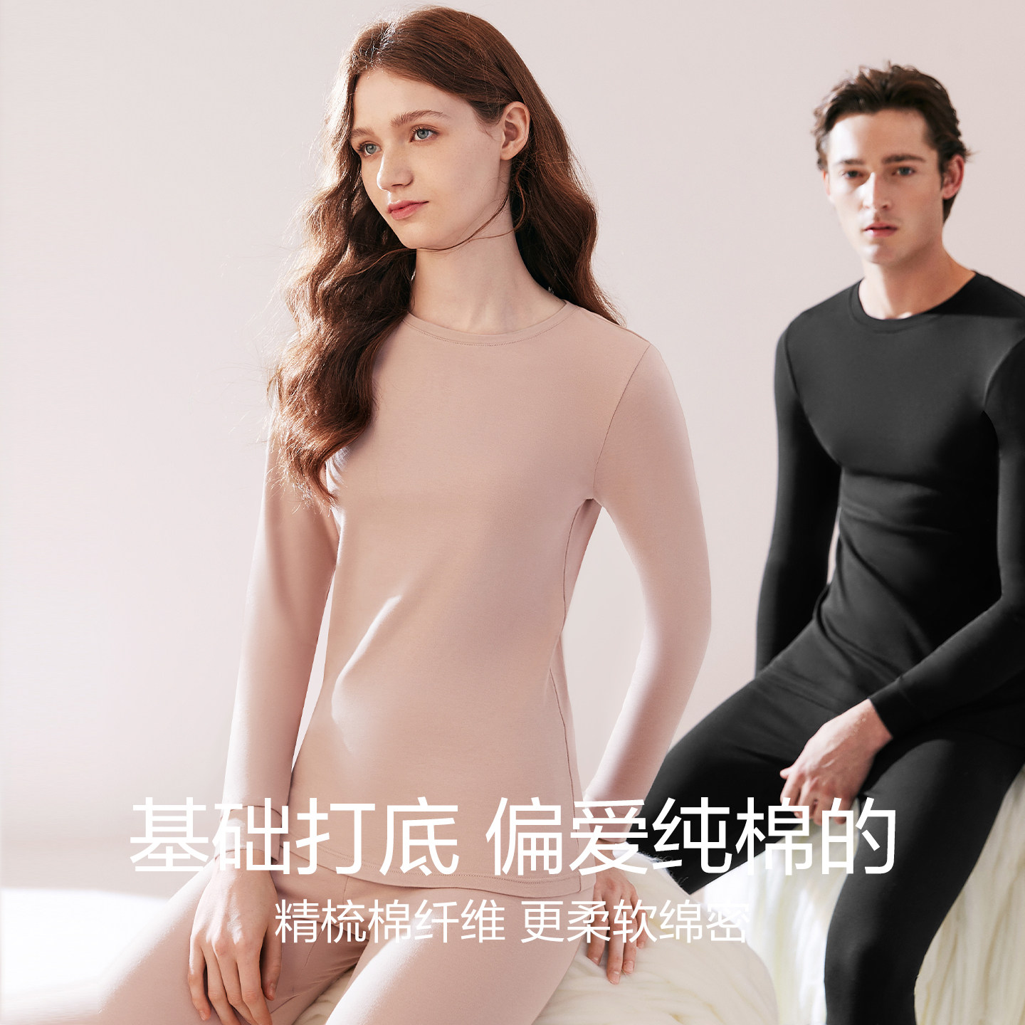 保暖套装 红豆纯棉内衣磨毛暖姜防螨抗菌薄款 男女士冬打底秋衣秋裤