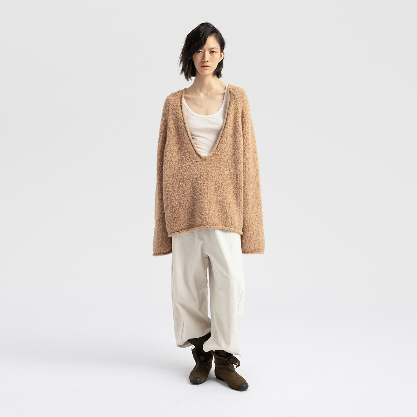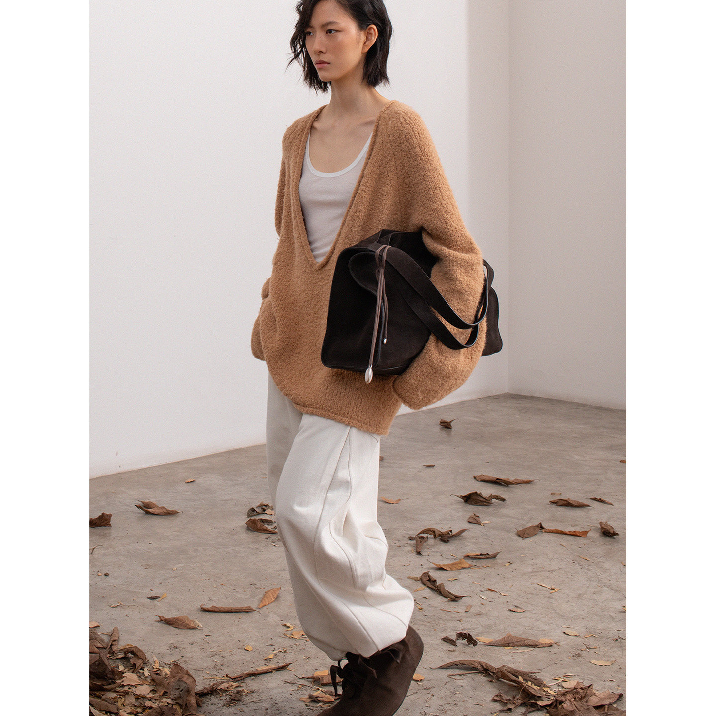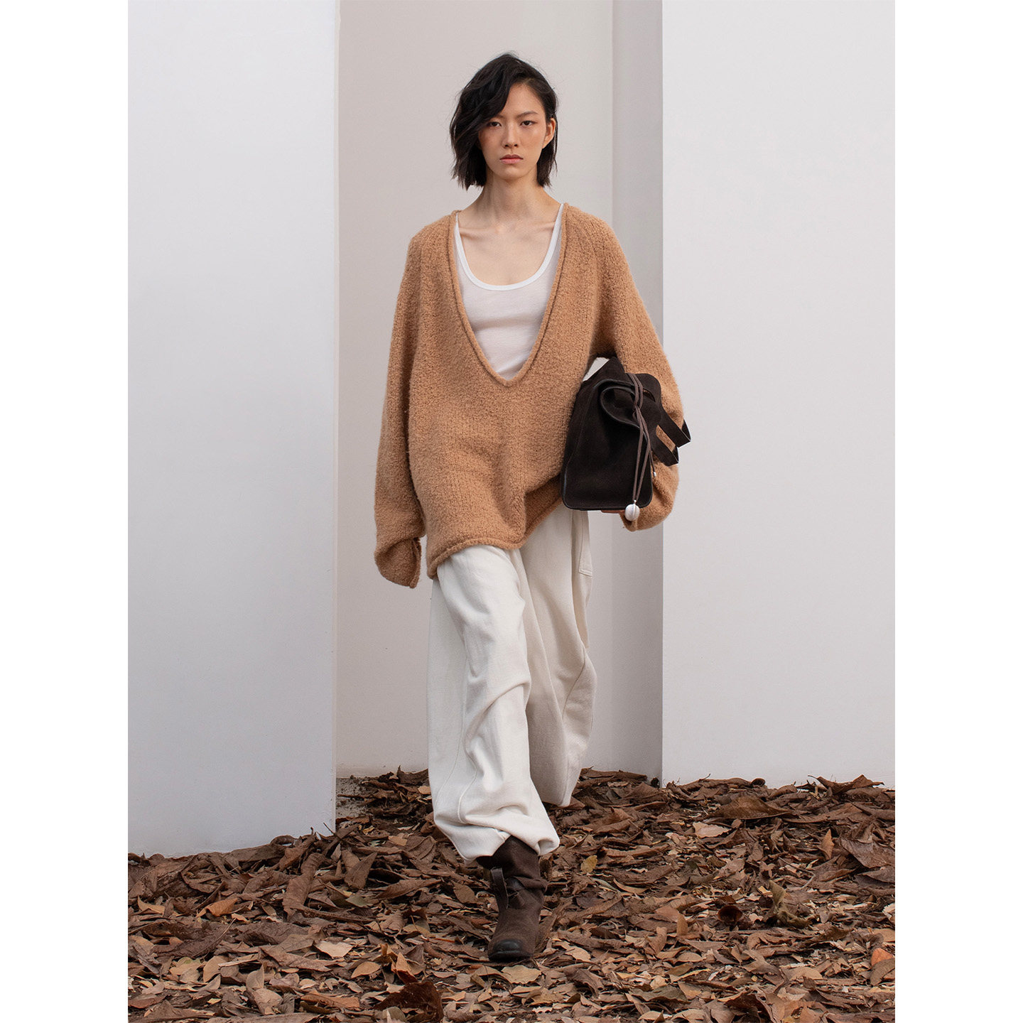 RTIMFD cleanfit宽松 老钱风深V领假两件毛衣氛围感休闲纽扣针织衫