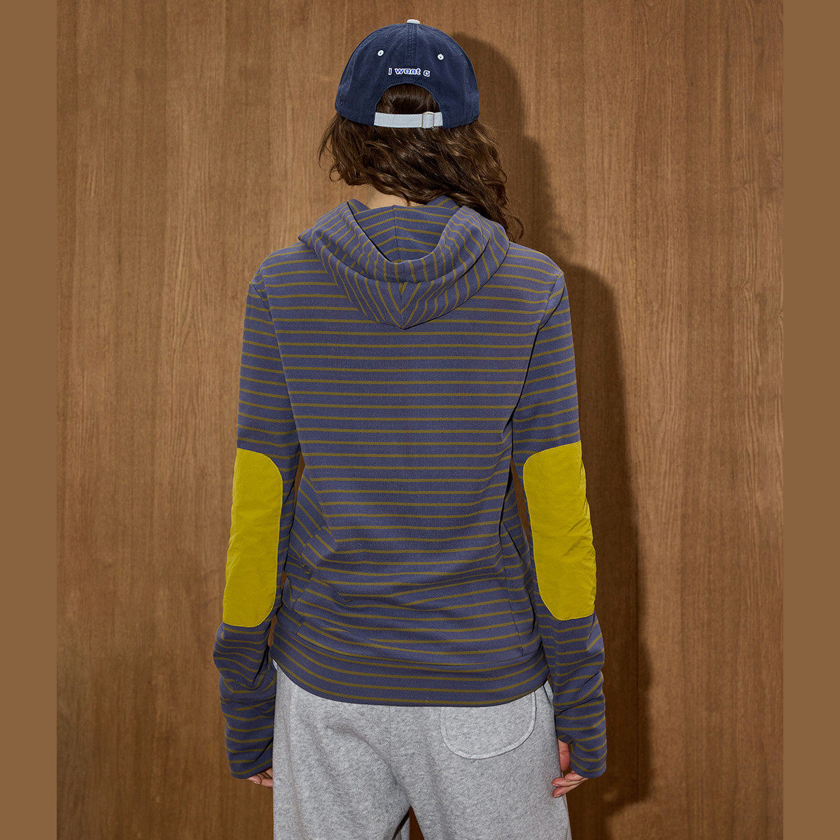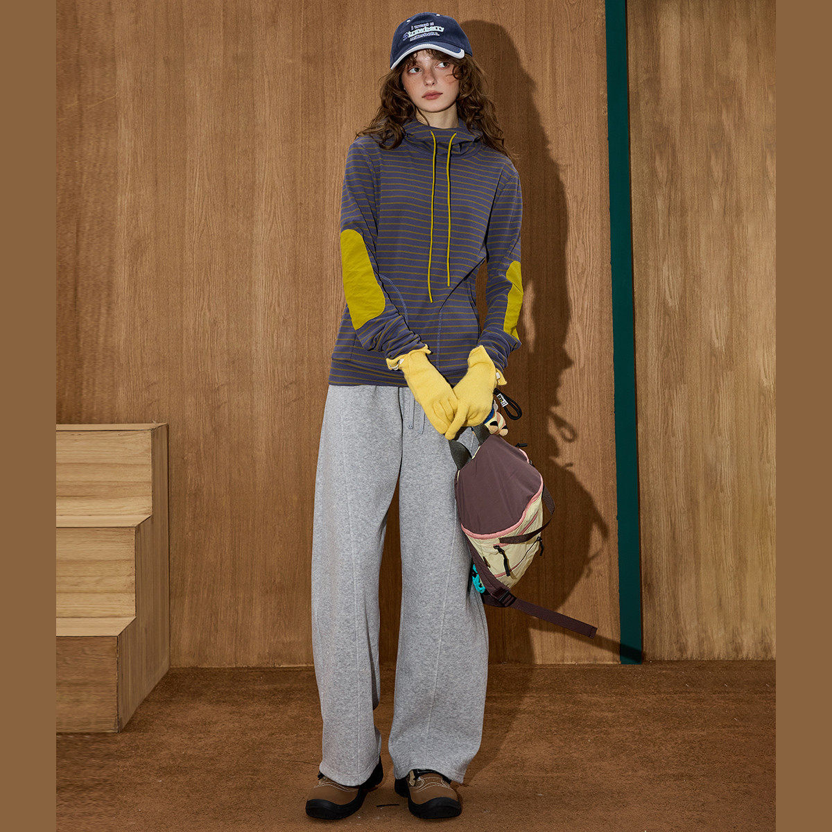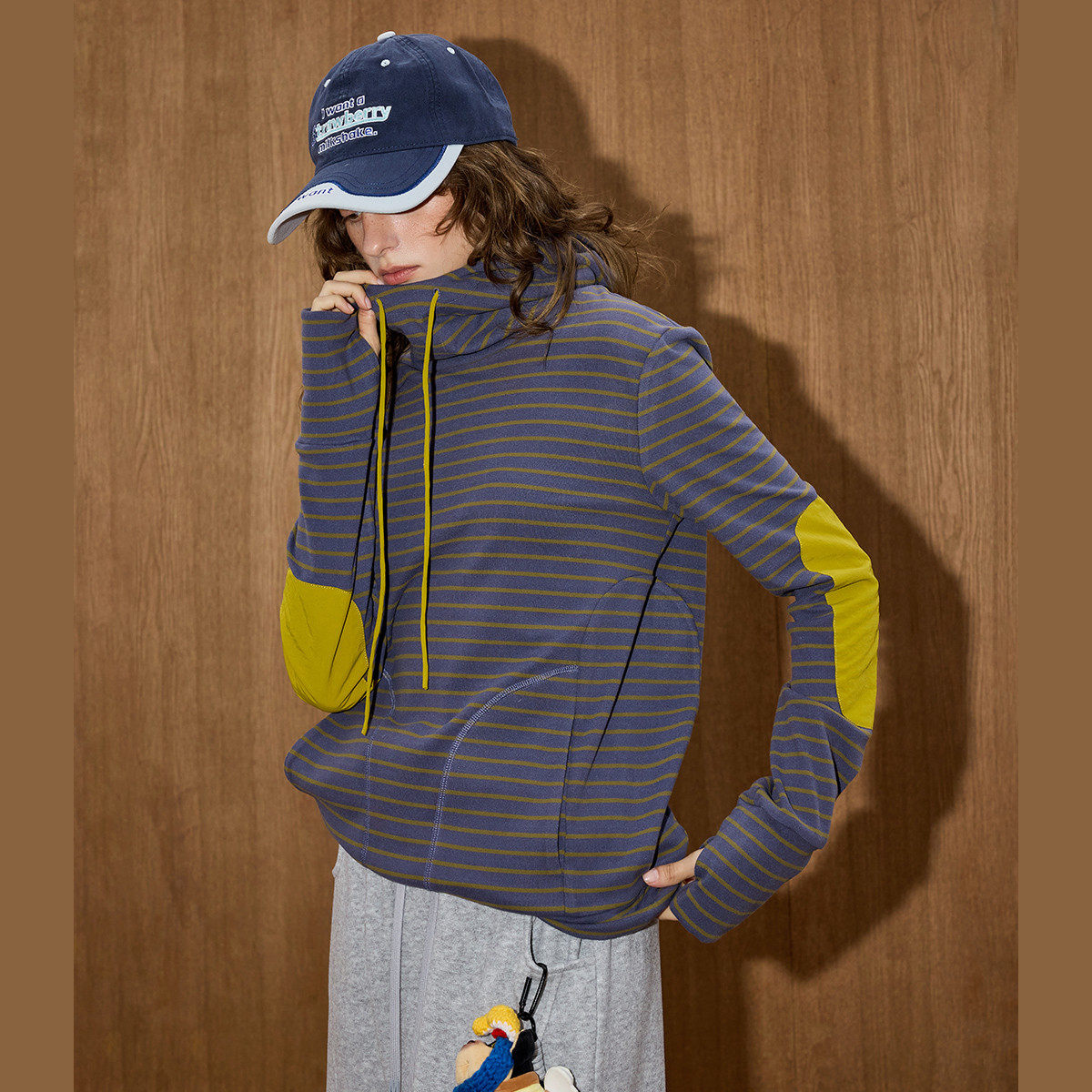 拼接时尚 新款 休闲上衣 女2026春季 coolhut紫色条纹连帽卫衣打底衫