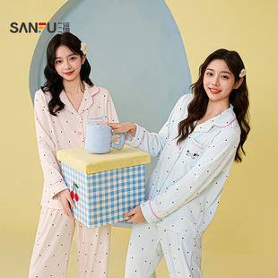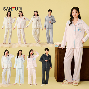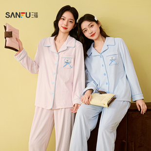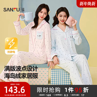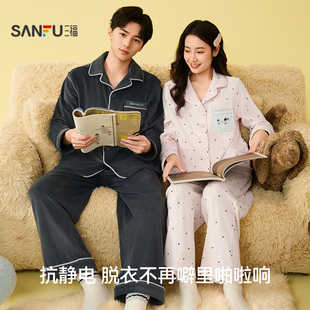 家居服507768 甜美宽松抗静电长袖 三福女冬季 情侣翻领睡衣套装
