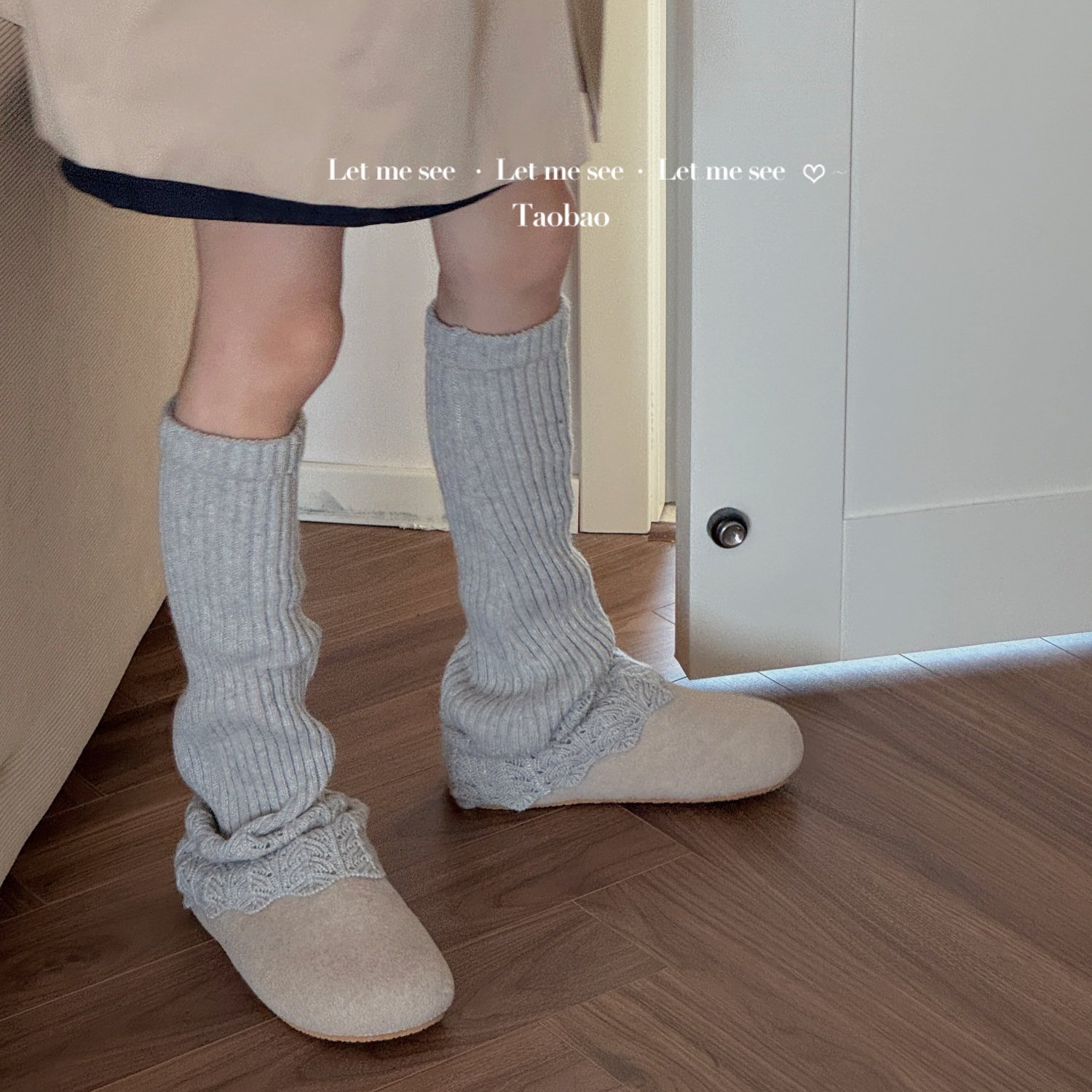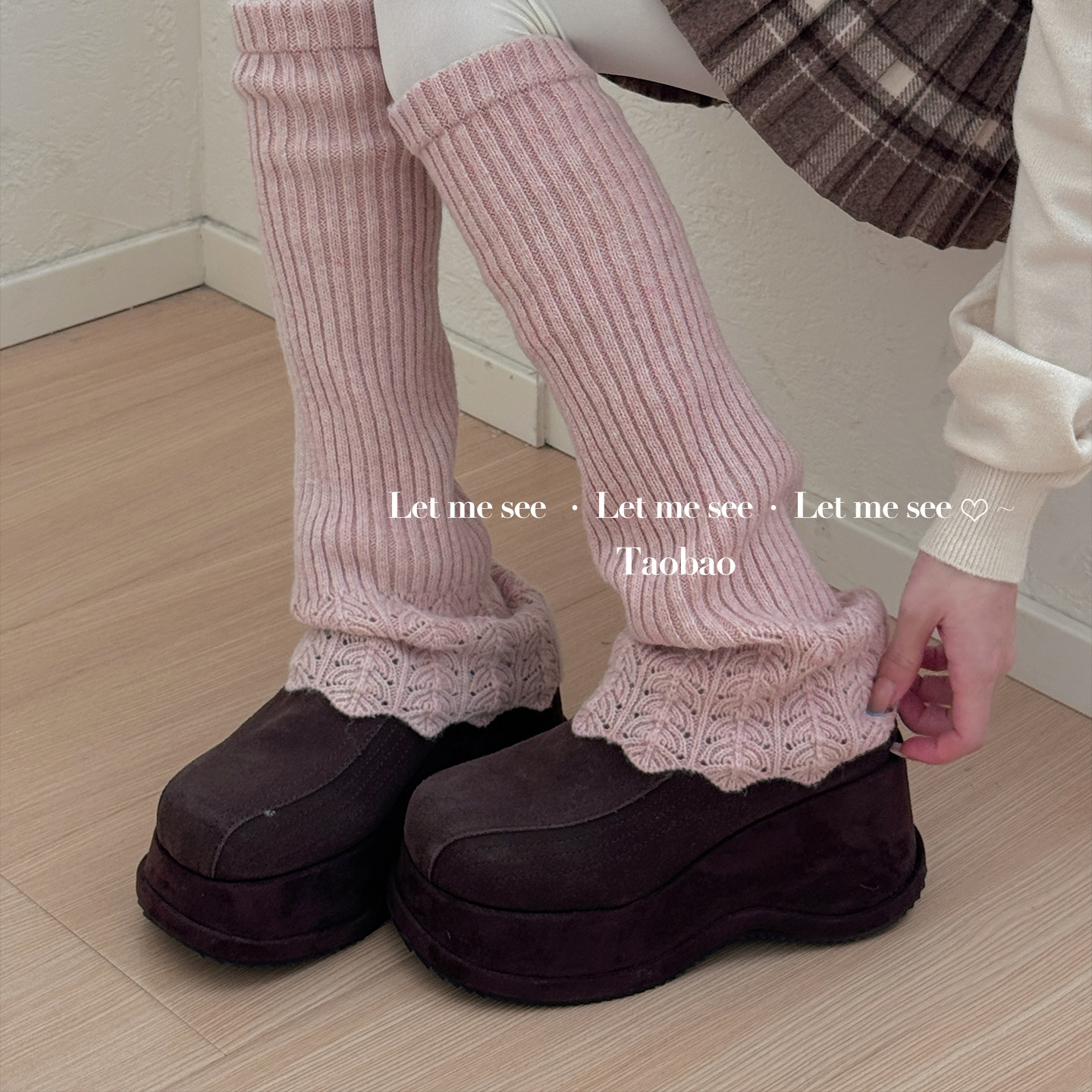 日系复古镂空羊毛小腿袜子女中筒堆堆袜秋冬保暖配靴子长筒袜靴袜