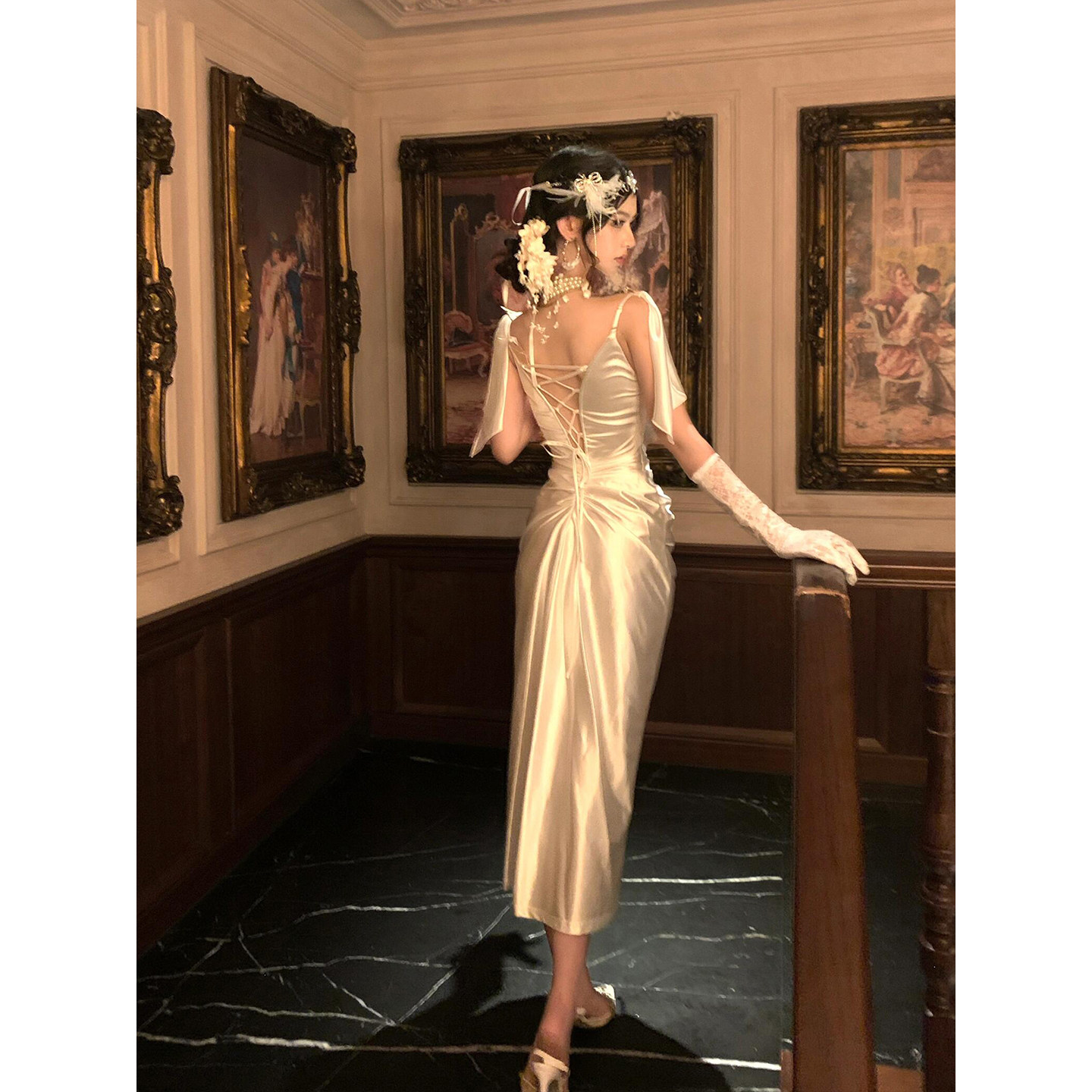 名媛宴会礼裙 高级感重工鱼骨连衣裙女万圣节穿搭修身 XZY 微胖法式
