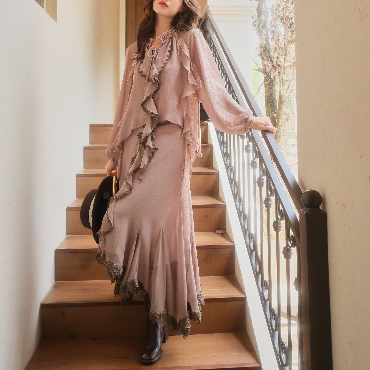 饰上衣不规则半裙 木耳边立领蕾丝花边装 彼得潘大叔 山川只秋