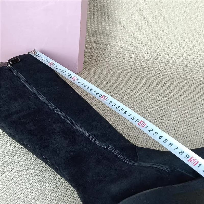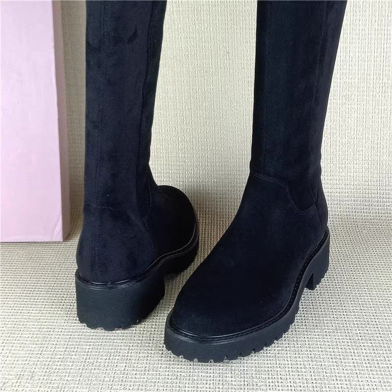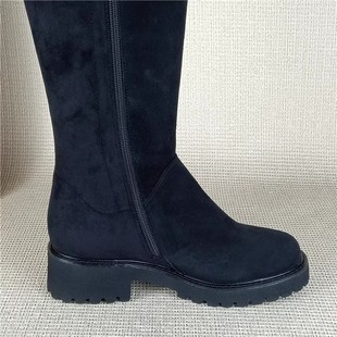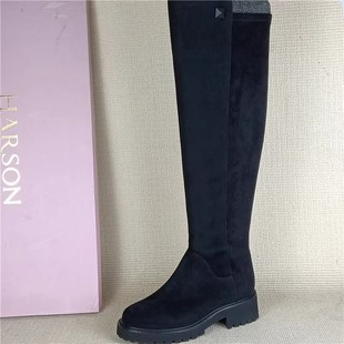 哈森正品 处理真皮靴圆头粗跟侧拉链长靴过膝靴女瘦瘦靴潮 撤柜断码