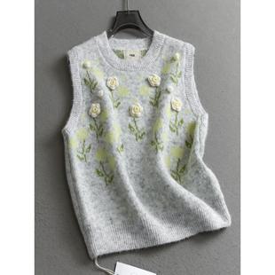 立体花朵宽松外穿圆领坎肩背心2025秋新款 减龄针织毛衣女马夹V354