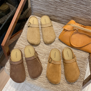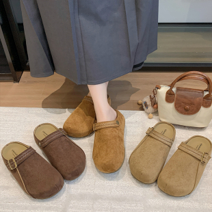 两穿包头半拖鞋 复古博肯鞋 女款 新款 外穿2026秋季 厚底内增高勃肯鞋