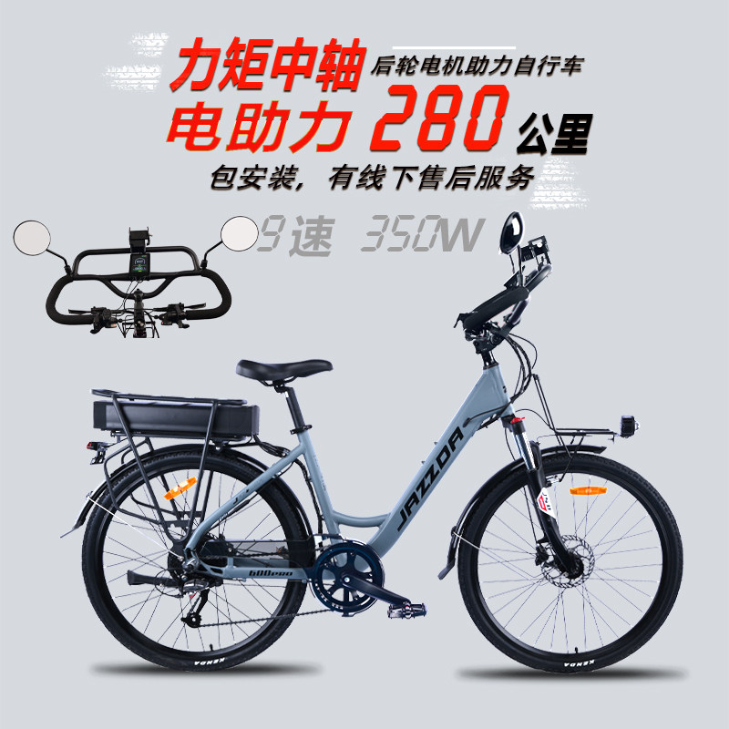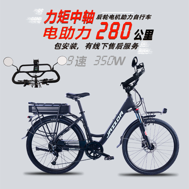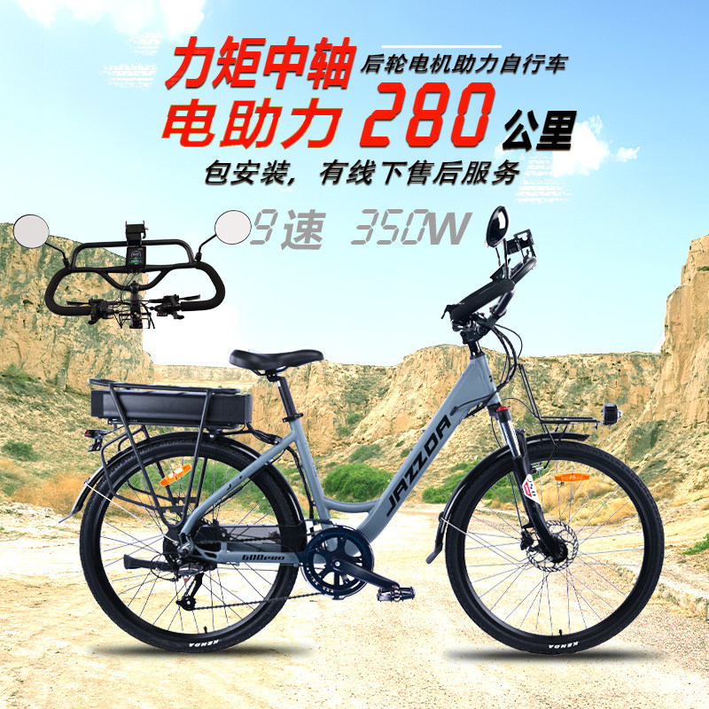 捷时达电动助力自行车长途旅行脚踏瓶单车通勤代步力矩中轴E BIKE