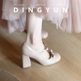 dingyun丁允裸粉色高跟鞋 圆头单鞋 粗跟玛丽珍鞋 小皮鞋 法式 羊皮版