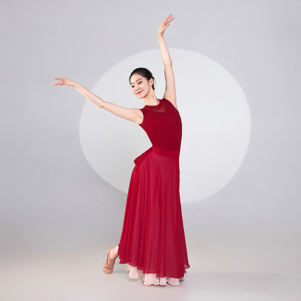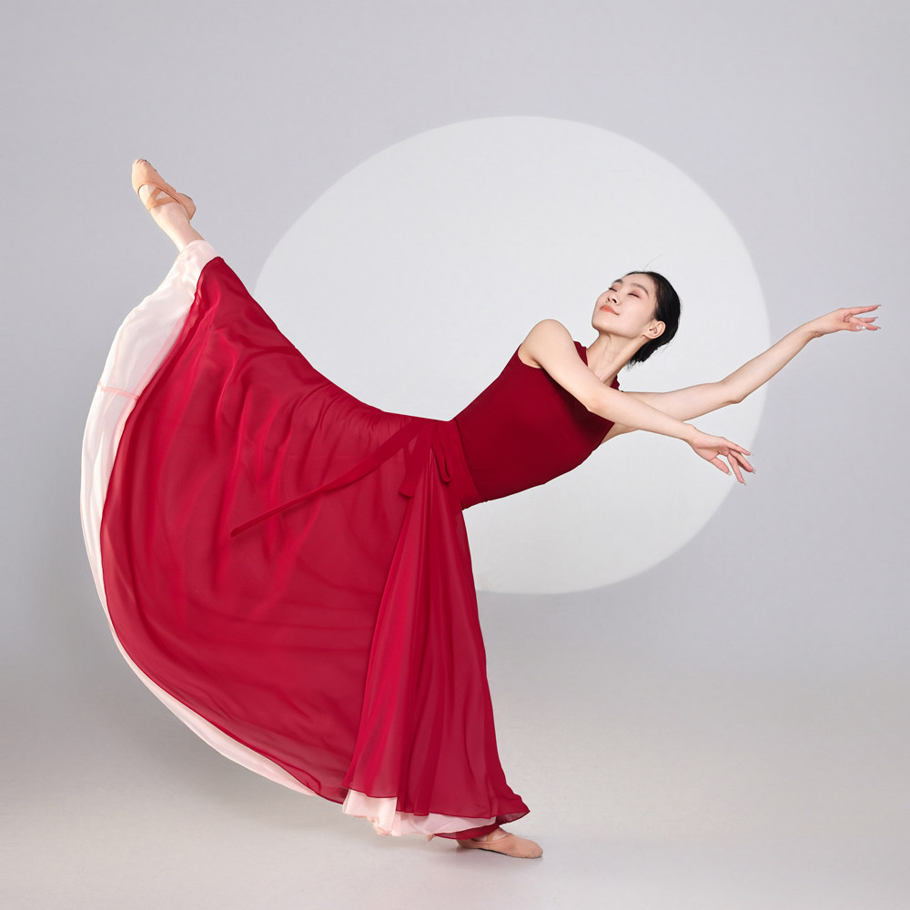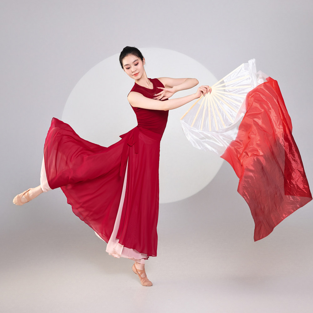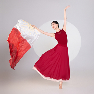 双层光亮舞飘逸中国风舞蹈演出服红色大裙摆扇子舞表演服艺考服装