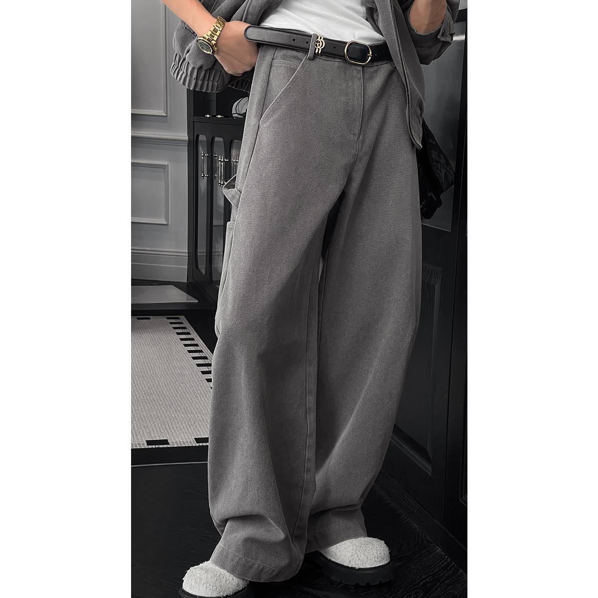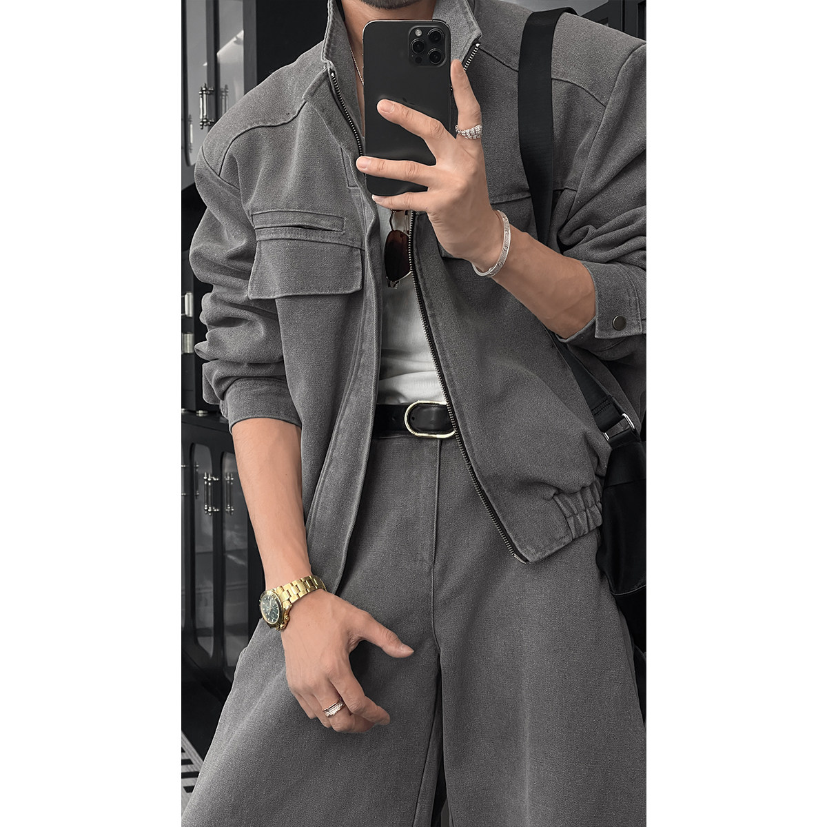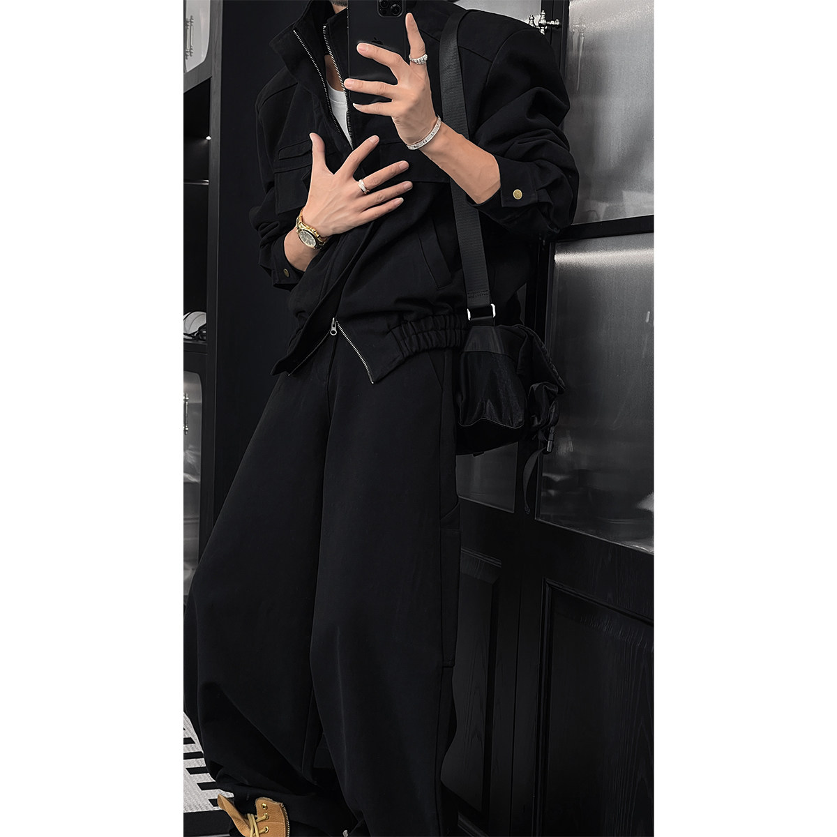 套装 龙叨叨秋季 设计感百搭立领夹克宽松阔腿长裤 潮流复古工装 新款