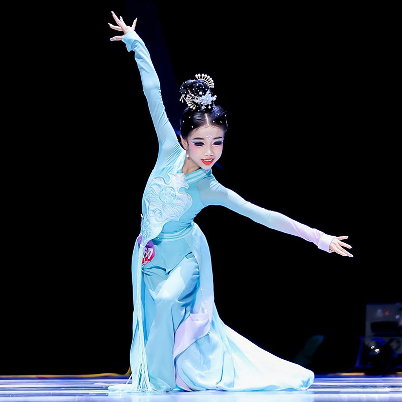 蓝色舞蹈服古典舞天宫掠影演出服装 考级舞台飘逸艺考民族舞表演服