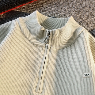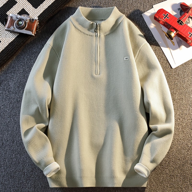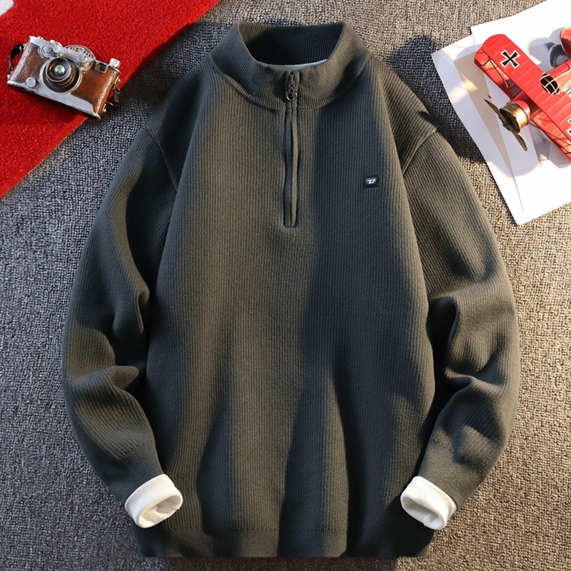 上衣男秋冬季 复古半拉链立领毛衣套头打底高领针织衫 美式 马登工装