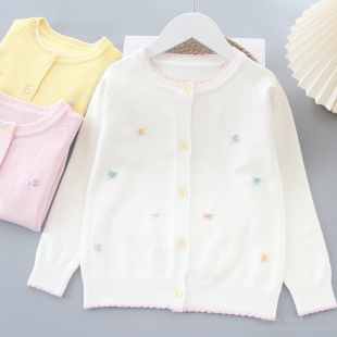 薄款 女童纯棉针织开衫 儿童洋气上衣中大童秋季 新款 毛衣外套 春秋装