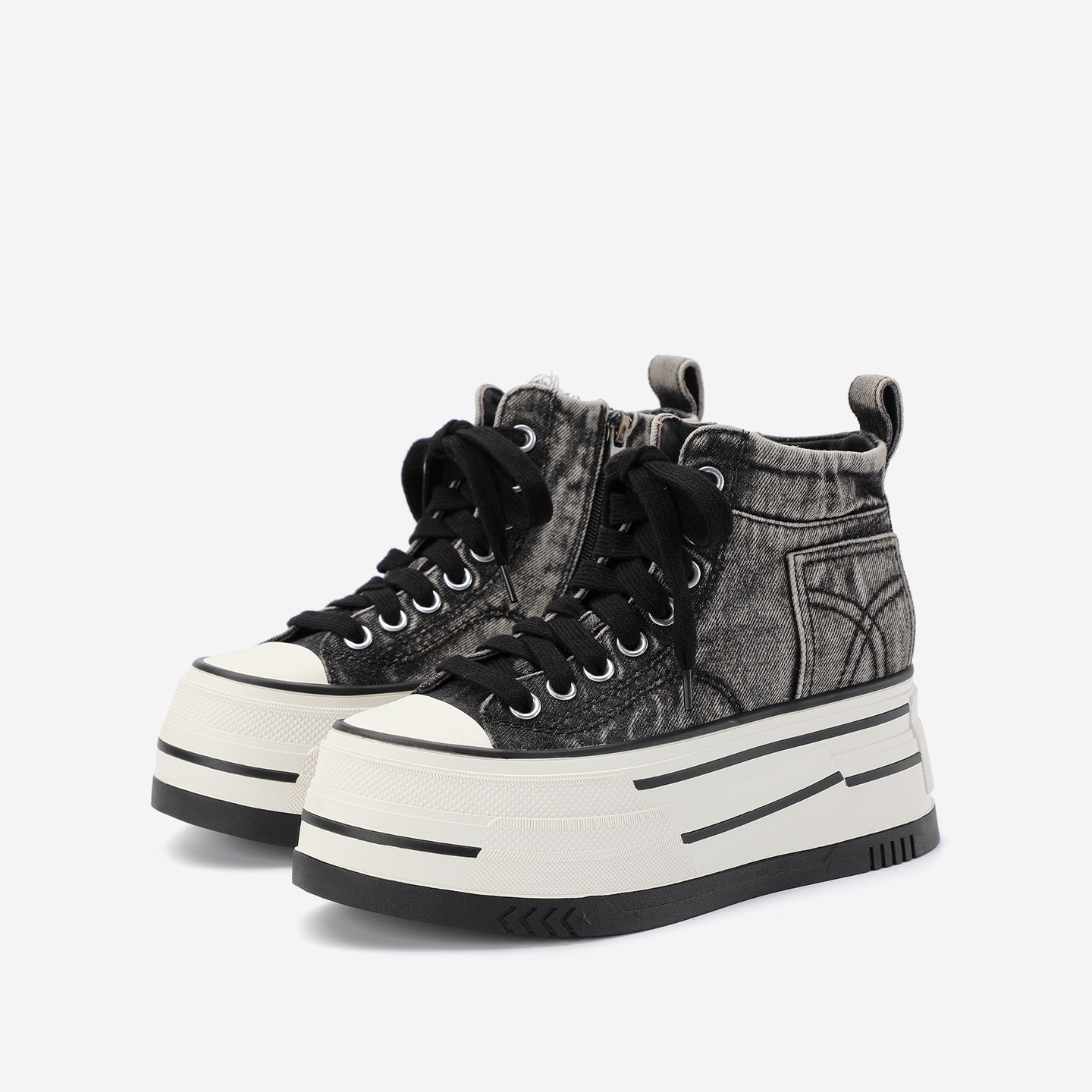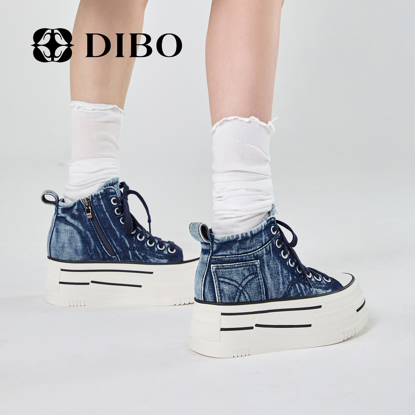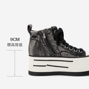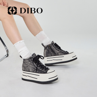 复古牛仔百搭高帮休闲鞋 女2025年秋季 女 增高厚底板鞋 DIBO碲铂新款
