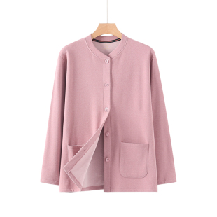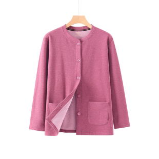 中老年德绒磨毛保暖上衣女士对襟开衫 秋衣秋冬妈妈系扣宽松棉毛衫