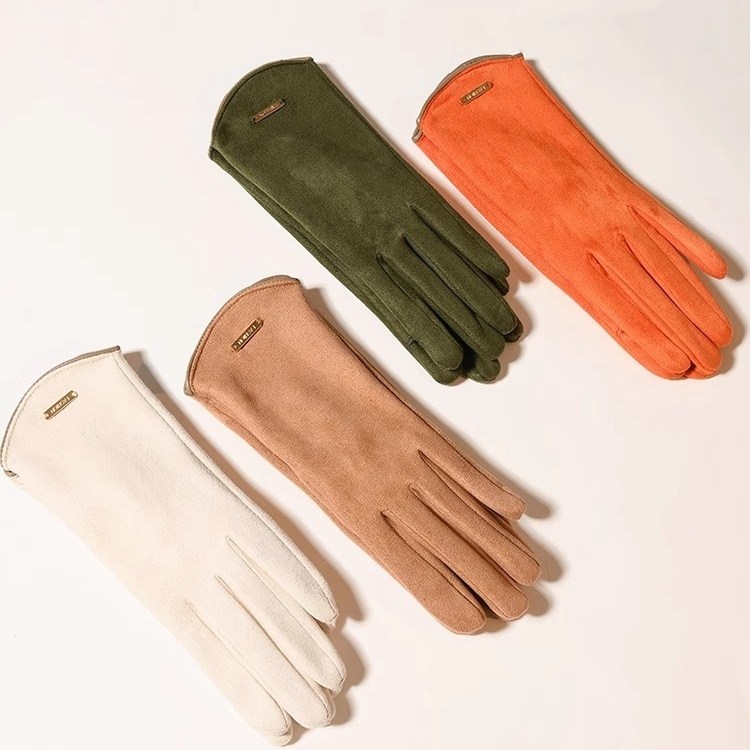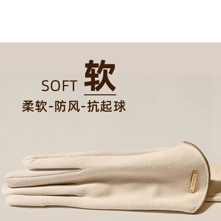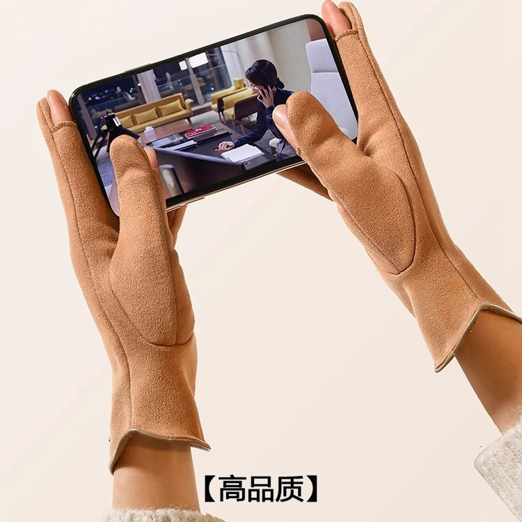 麂皮手套女士秋冬款 骑行露指可触屏加绒冬天防风御寒骑车保暖手套