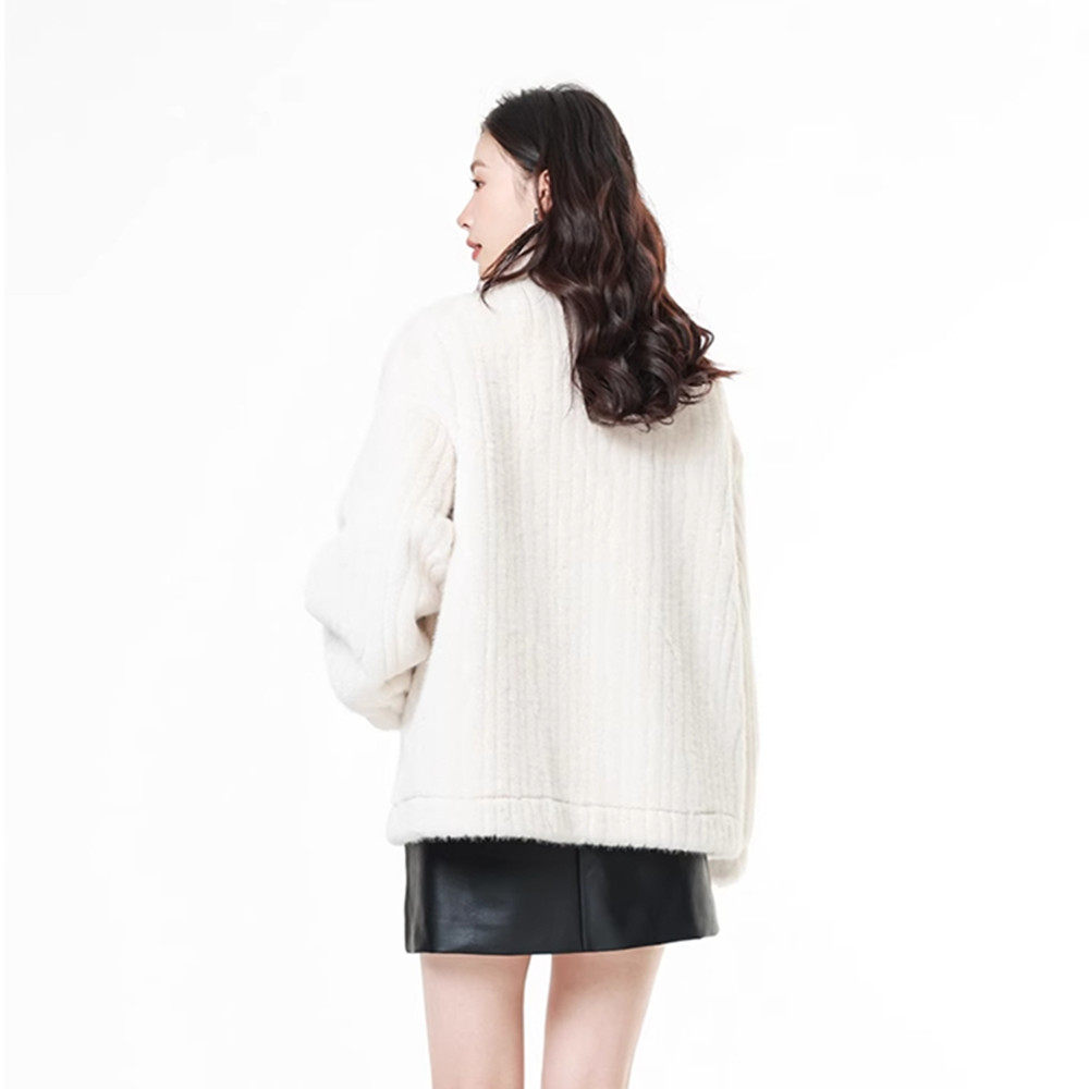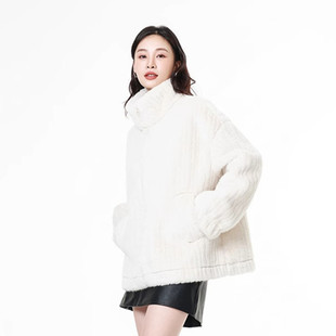 Mixblu麦斯兰专柜正品 轻奢风立领宽松环保皮草秋冬外套女WX924514