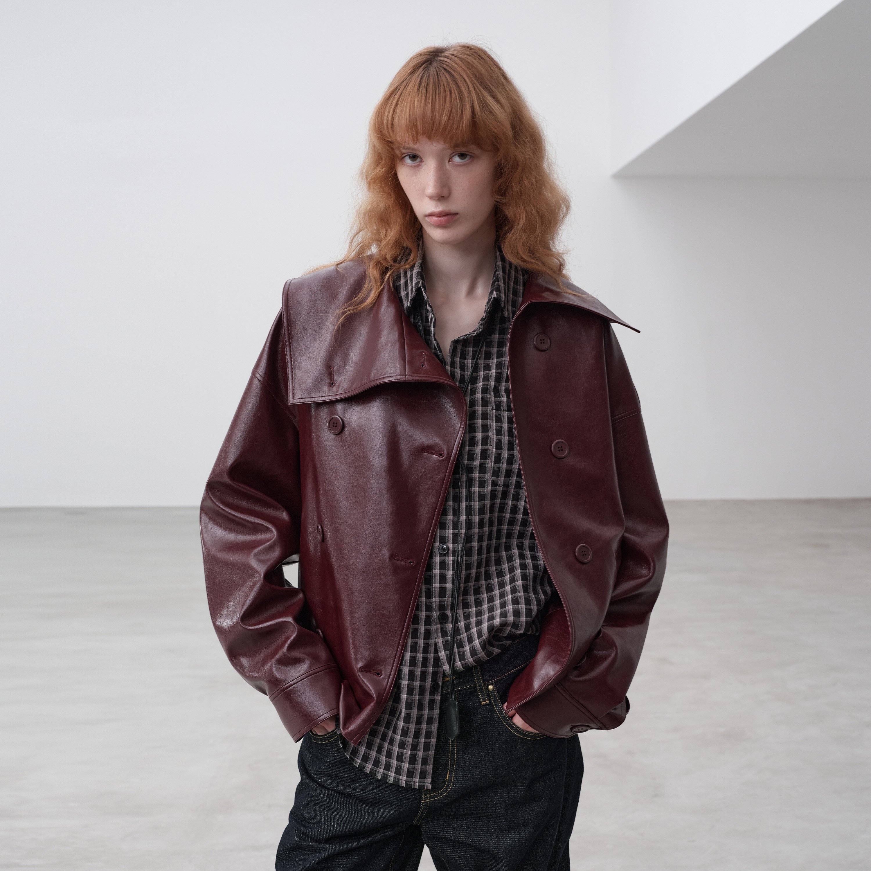 水云间软皮翻领皮衣夹克外套短款 上衣2025 人造革女复古中性风长袖