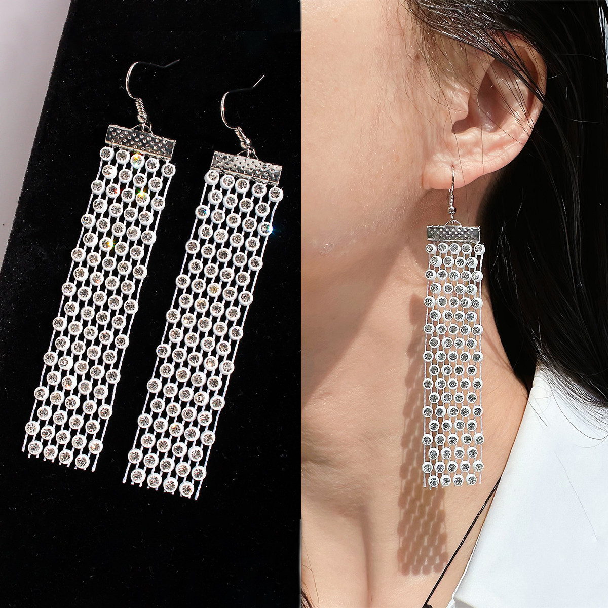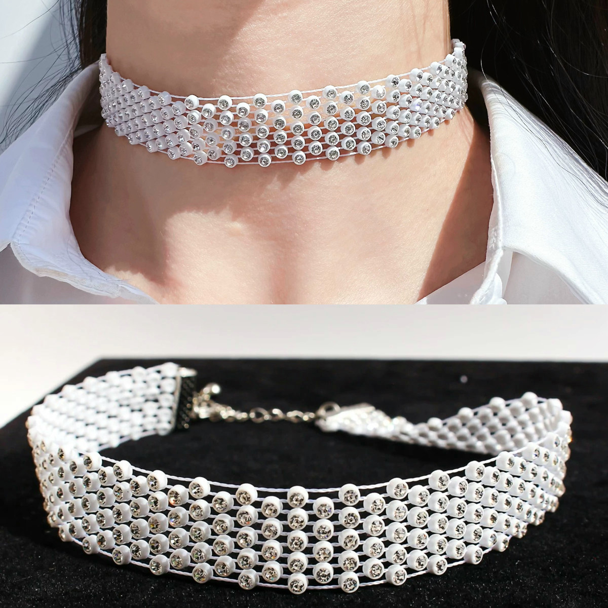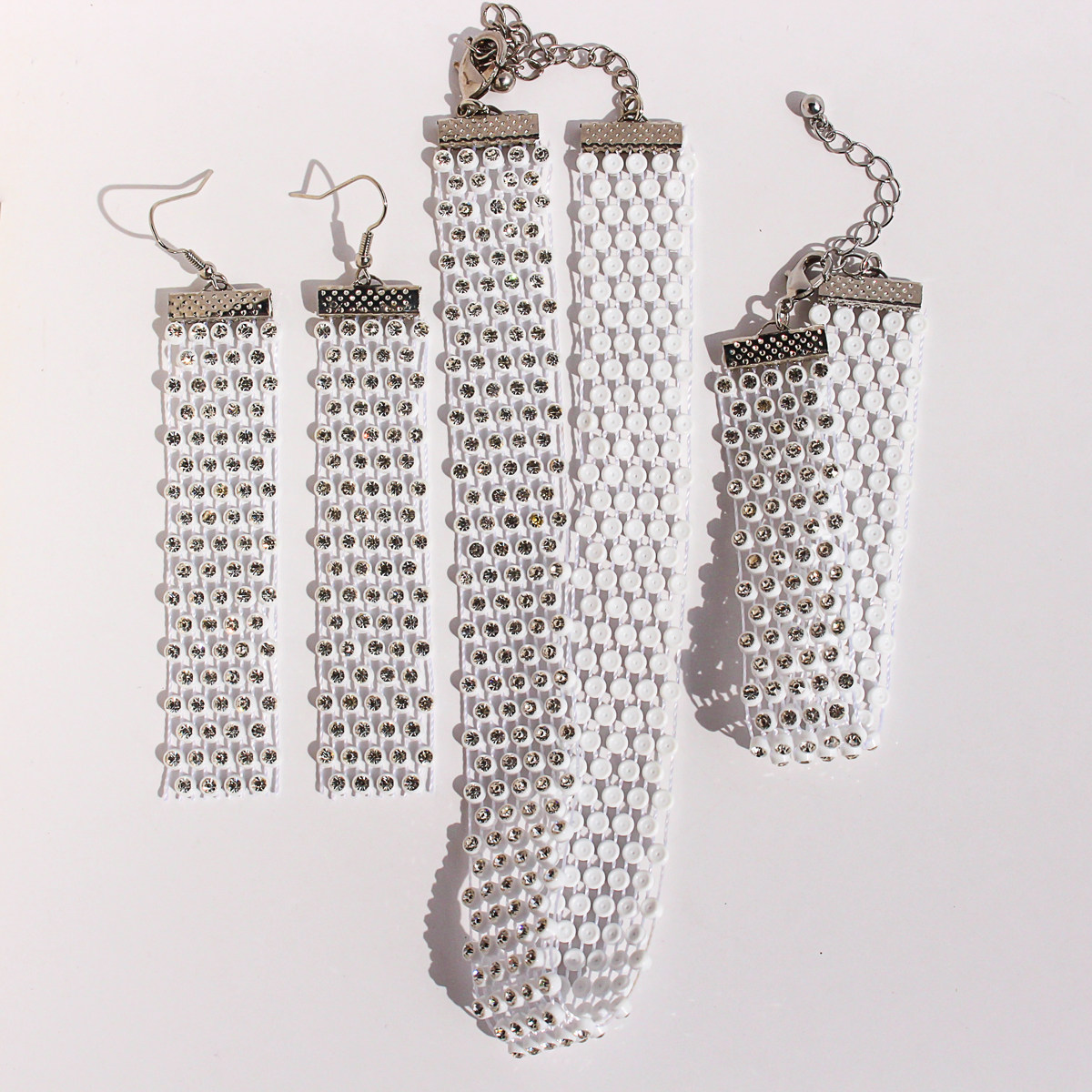 外贸饰品小众闪钻网格chocker锁骨链耳环手链套装 女蹦迪街拍V284