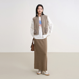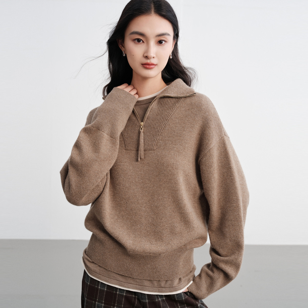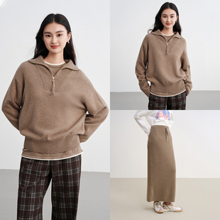 新款 EP雅莹女装 2025冬装 直身半裙套装 9581A 拉链套头羊绒衫